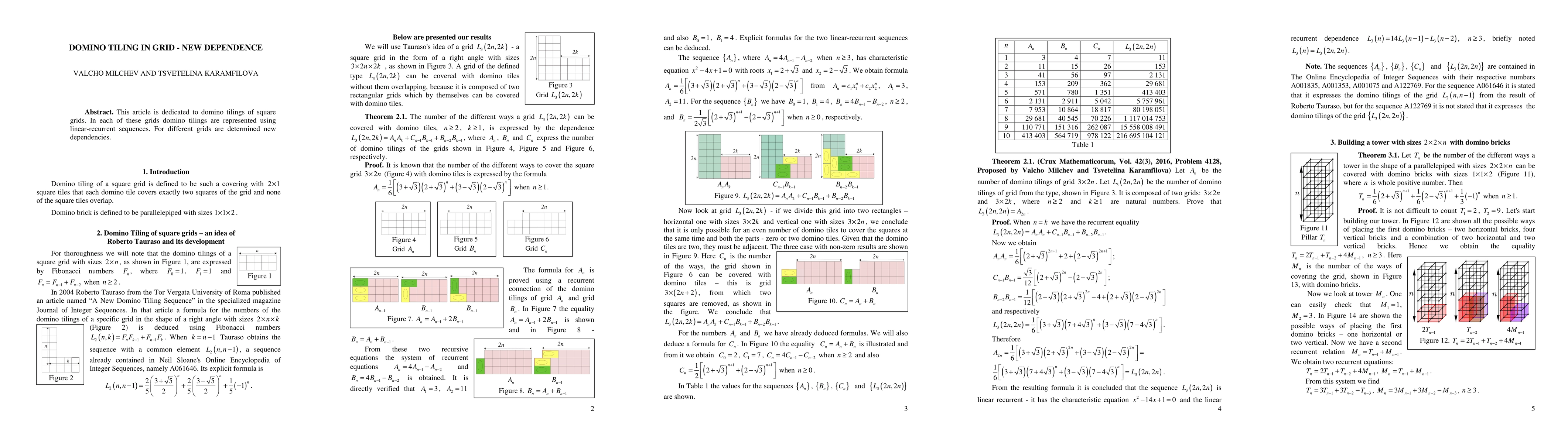 This paper explores domino tilings of square grids, representing them with linear-recurrent sequences and identifying new dependencies for various grid configurations.