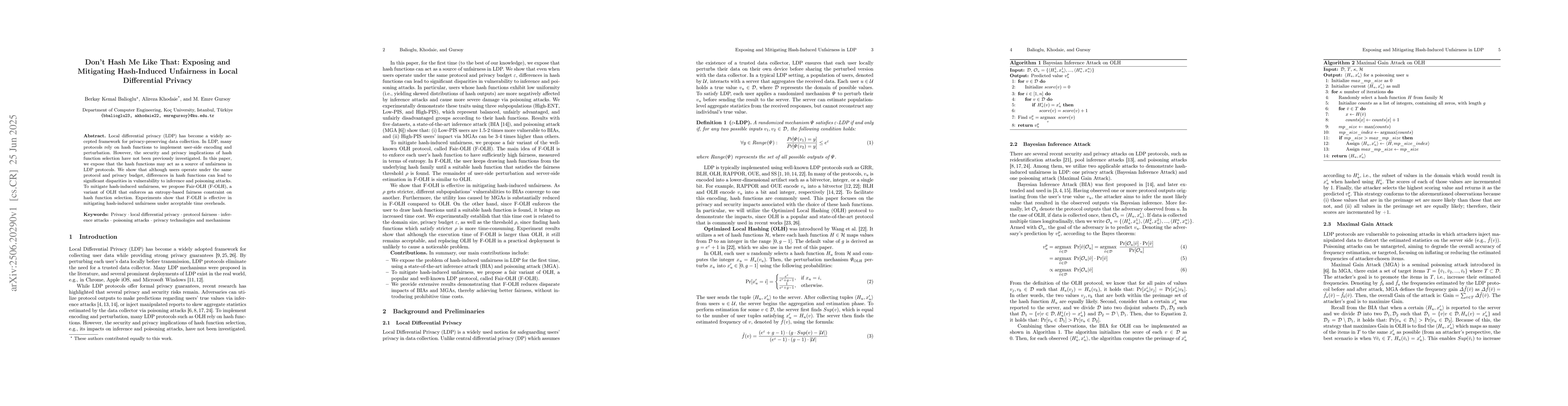 Local differential privacy (LDP) has become a widely accepted framework for privacy-preserving data collection. In LDP, many protocols rely on hash functions to implement user-side encoding and perturbation. However, the security and privacy implications of hash function selection have not been previously investigated. In this paper, we expose that the hash functions may act as a source of unfairness in LDP protocols. We show that although users operate under the same protocol and privacy budget, differences in hash functions can lead to significant disparities in vulnerability to inference and poisoning attacks. To mitigate hash-induced unfairness, we propose Fair-OLH (F-OLH), a variant of OLH that enforces an entropy-based fairness constraint on hash function selection. Experiments show that F-OLH is effective in mitigating hash-induced unfairness under acceptable time overheads.