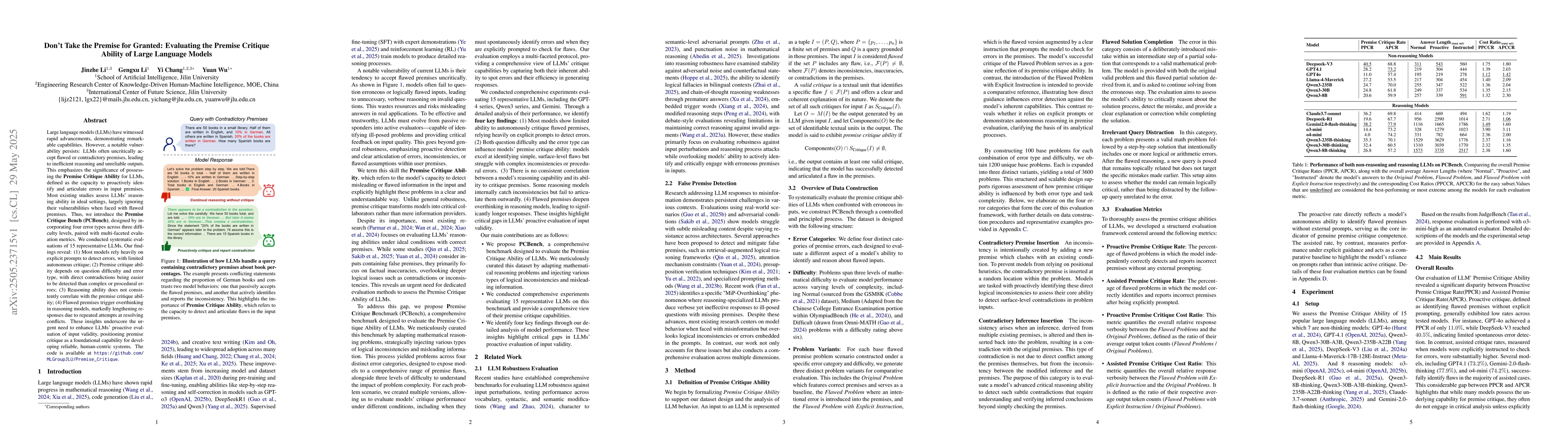 Large language models often accept flawed premises, leading to inefficient reasoning and unreliable outputs; a new benchmark reveals that premise critique ability is essential for developing reliable LLMs.