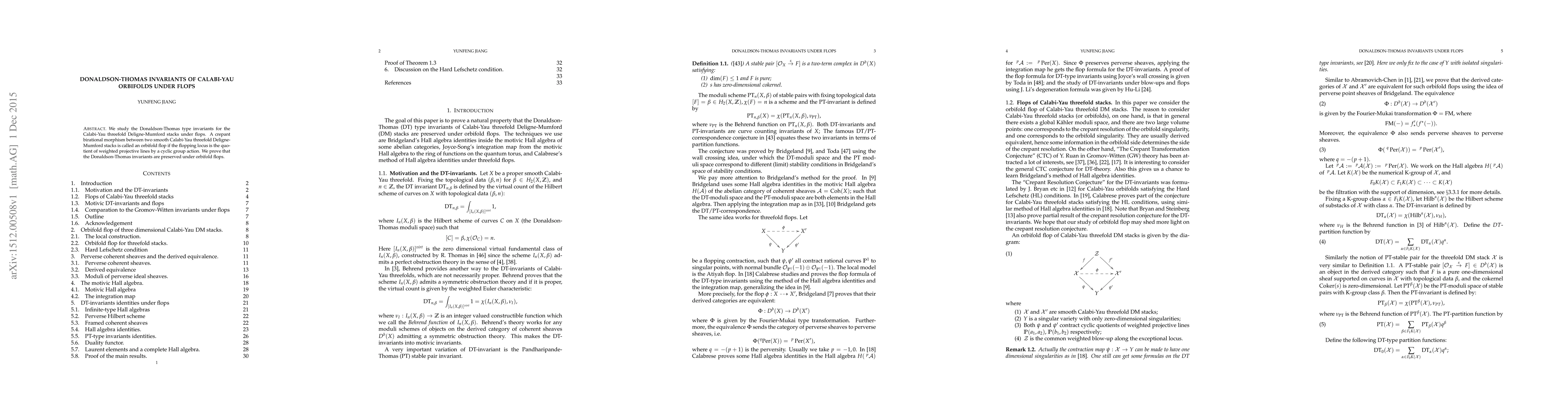 This paper investigates Donaldson-Thomas invariants for Calabi-Yau threefolds in Deligne-Mumford stacks, demonstrating that these invariants remain unchanged under certain crepant birational transformations known as orbifold flops, which involve quotients of weighted projective lines by cyclic group actions.