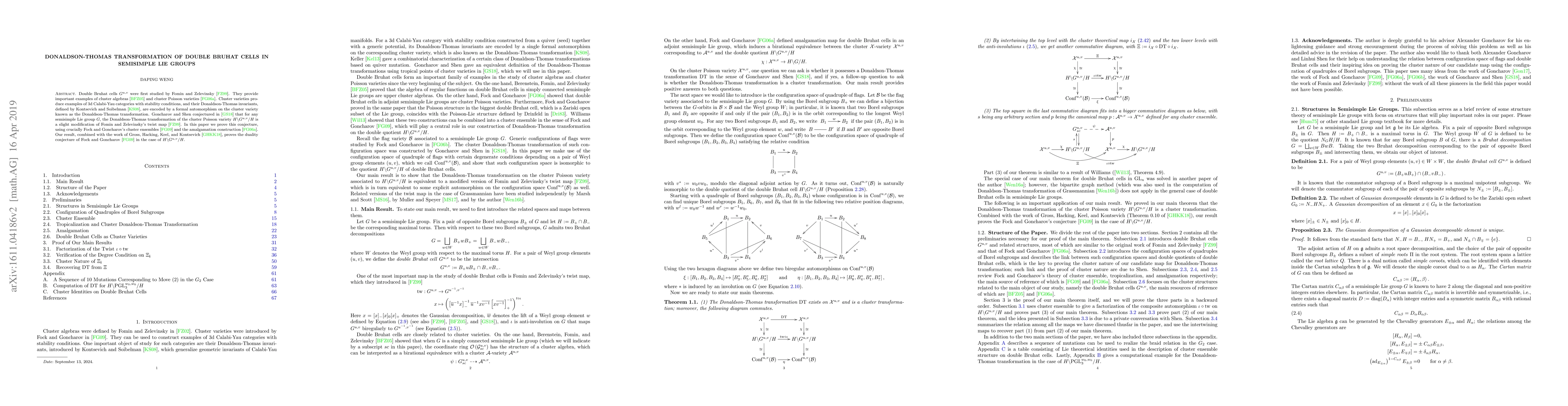 Double Bruhat cells $G^{u,v}$ were studied by Fomin and Zelevinsky. They provide important examples of cluster algebras and cluster Poisson varieties. Cluster varieties produce examples of 3d Calabi-Yau categories with stability conditions, and their Donaldson-Thomas invariants, defined by Kontsevich and Soibelman, are encoded by a formal automorphism on the cluster variety known as the Donaldson-Thomas transformation. Goncharov and Shen conjectured in that for any semisimple Lie group $G$, the Donaldson-Thomas transformation of the cluster Poisson variety $H\backslash G^{u,v}/H$ is a slight modification of Fomin and Zelevinsky's twist map. In this paper we prove this conjecture, using crucially Fock and Goncharov's cluster ensembles and the amalgamation construction. Our result, combined with the work of Gross, Hacking, Keel, and Kontsevich, proves the duality conjecture of Fock and Goncharov in the case of $H\backslash G^{u,v}/H$.