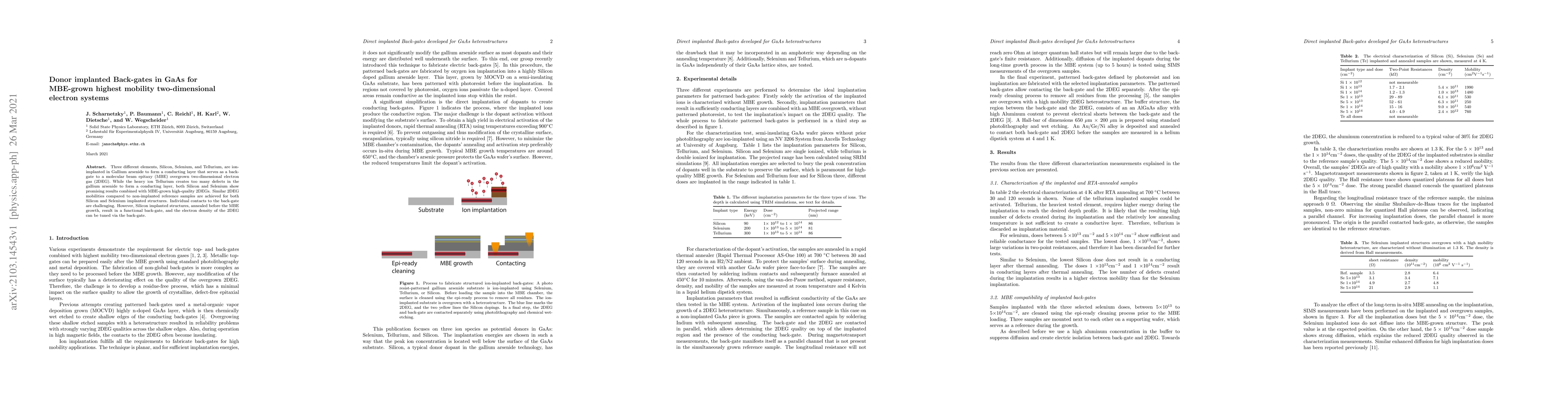 This paper investigates the use of ion-implanted donor elements (Silicon, Selenium, and Tellurium) in Gallium arsenide to create a back-gate for MBE-grown high-mobility two-dimensional electron systems (2DEGs). While Tellurium causes excessive damage, Silicon and Selenium show potential, with Silicon achieving similar 2DEG mobility and tunable electron density when annealed before MBE.