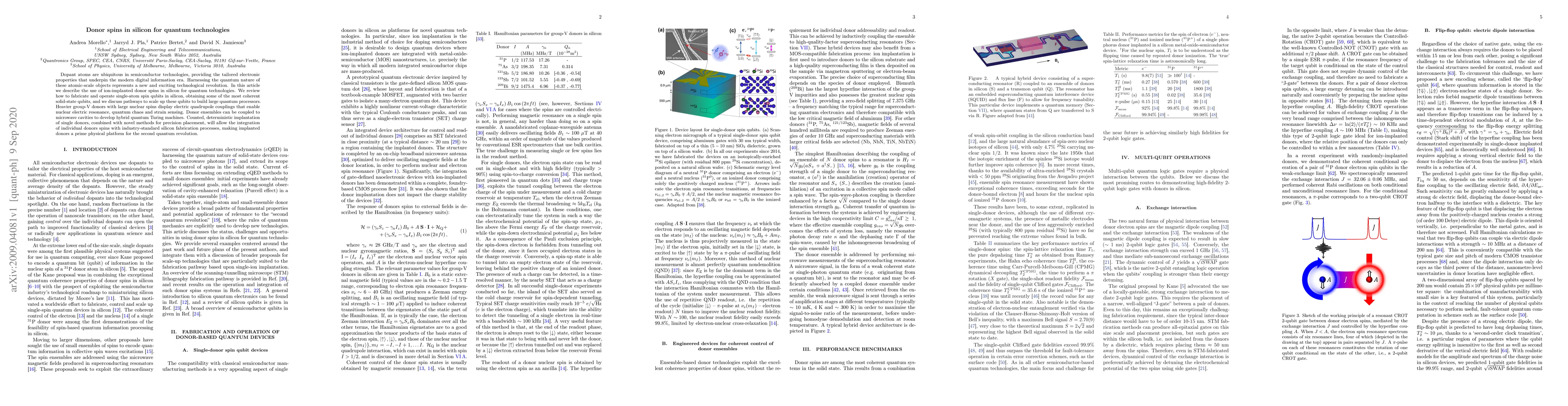 This paper explores the use of ion-implanted donor spins in silicon for quantum technologies, detailing the fabrication and operation of single-atom spin qubits, and discussing pathways to scale these qubits for large quantum processors. It also highlights the potential of heavier group-V donors for applications like nuclear electric resonance and quantum chaos.