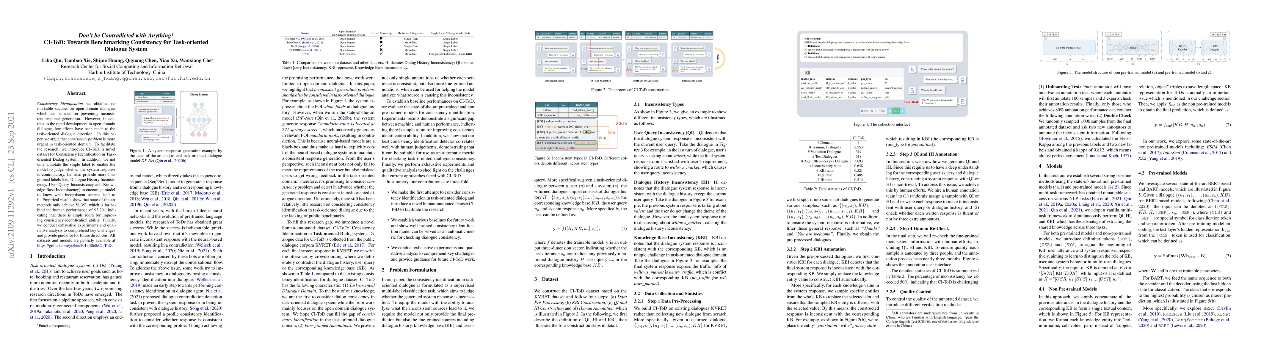 This paper introduces CI-ToD, a new dataset aimed at benchmarking consistency identification in task-oriented dialogue systems, highlighting the need for improved consistency in this domain. The dataset provides both coarse and fine-grained labels to identify different types of inconsistencies, revealing significant room for improvement in current models.