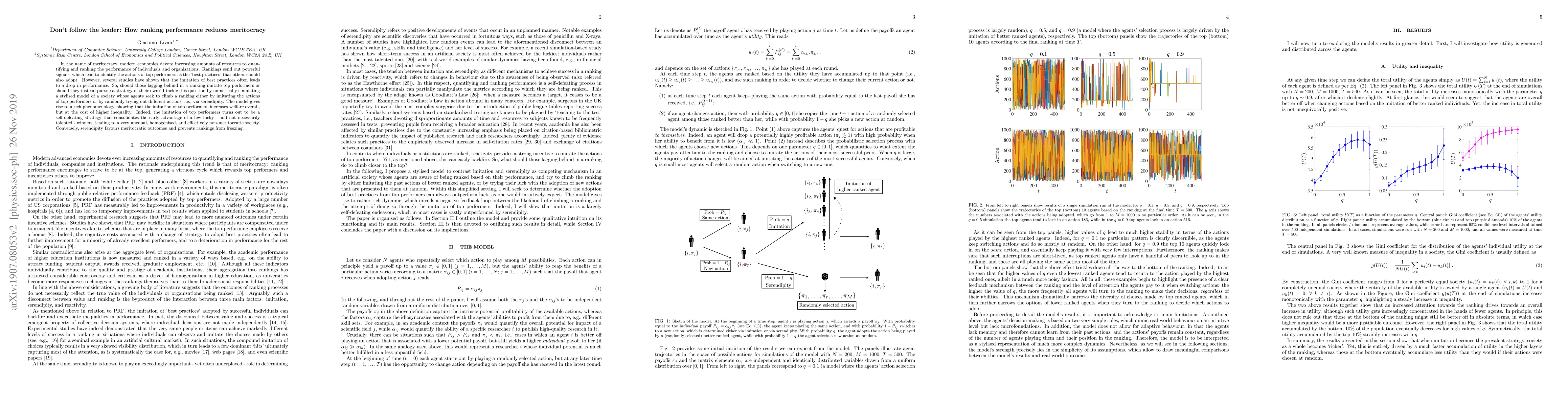 In the name of meritocracy, modern economies devote increasing amounts of resources to quantifying and ranking the performance of individuals and organisations. Rankings send out powerful signals, which lead to identify the actions of top performers as the `best practices' that others should also adopt. However, several studies have shown that the imitation of best practices often leads to a drop in performance. So, should those lagging behind in a ranking imitate top performers or should they instead pursue a strategy of their own? I tackle this question by numerically simulating a stylised model of a society whose agents seek to climb a ranking either by imitating the actions of top performers or by randomly trying out different actions, i.e., via serendipity. The model gives rise to a rich phenomenology, showing that the imitation of top performers increases welfare overall, but at the cost of higher inequality. Indeed, the imitation of top performers turns out to be a self-defeating strategy that consolidates the early advantage of a few lucky - and not necessarily talented - winners, leading to a very unequal, homogenised, and effectively non-meritocratic society. Conversely, serendipity favours meritocratic outcomes and prevents rankings from freezing.