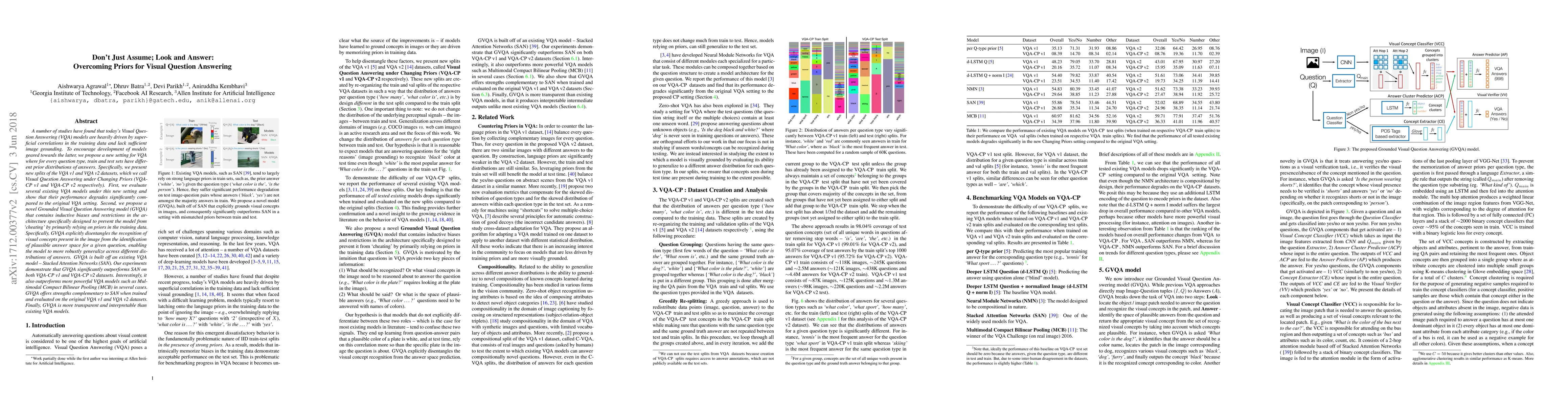 Researchers created a new dataset for Visual Question Answering (VQA) with different prior distributions to test existing models' ability to rely on image content versus question-specific answers. They developed a novel model, GVQA, which outperformed previous models in some cases and offered strengths complementing other architectures.