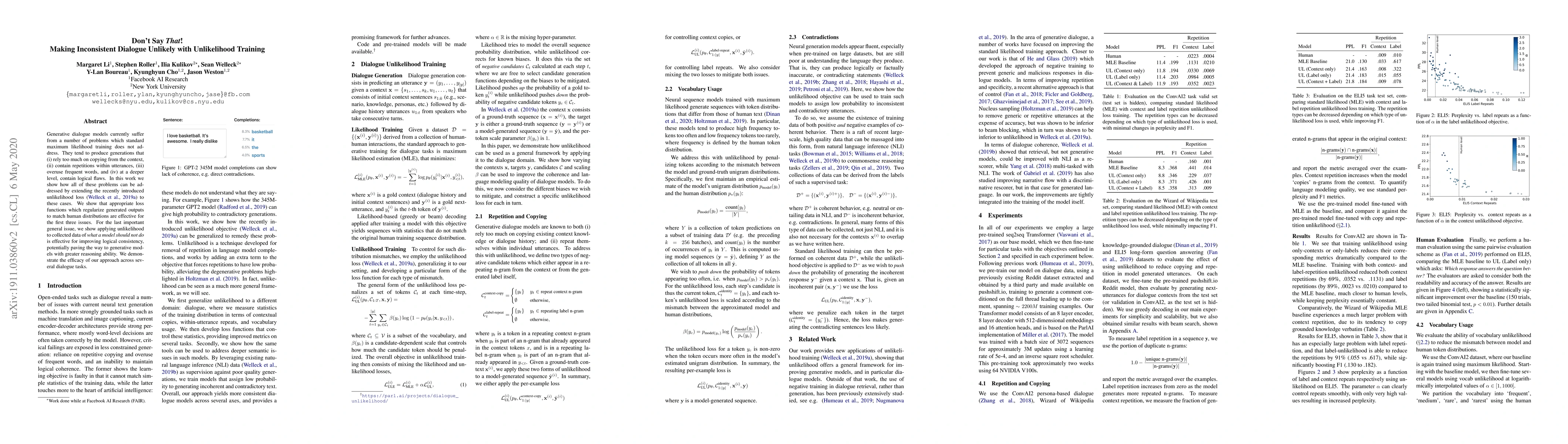 The paper introduces an enhanced unlikelihood training method to tackle issues in generative dialogue models, such as excessive context copying, repetitions, word overuse, and logical flaws. It demonstrates that this method effectively improves dialogue quality across various tasks, suggesting a path to more logical and reasoning-capable generative models.