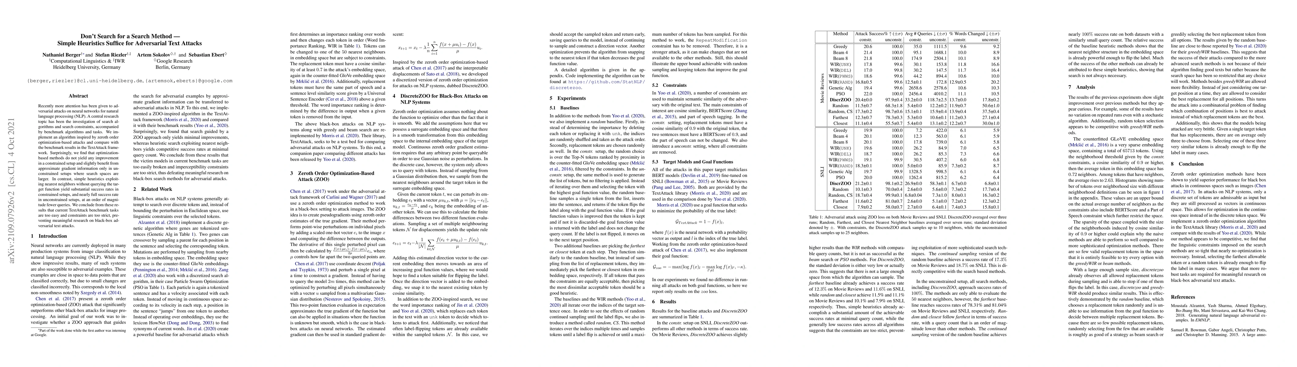 Recently more attention has been given to adversarial attacks on neural networks for natural language processing (NLP). A central research topic has been the investigation of search algorithms and search constraints, accompanied by benchmark algorithms and tasks. We implement an algorithm inspired by zeroth order optimization-based attacks and compare with the benchmark results in the TextAttack framework. Surprisingly, we find that optimization-based methods do not yield any improvement in a constrained setup and slightly benefit from approximate gradient information only in unconstrained setups where search spaces are larger. In contrast, simple heuristics exploiting nearest neighbors without querying the target function yield substantial success rates in constrained setups, and nearly full success rate in unconstrained setups, at an order of magnitude fewer queries. We conclude from these results that current TextAttack benchmark tasks are too easy and constraints are too strict, preventing meaningful research on black-box adversarial text attacks.
