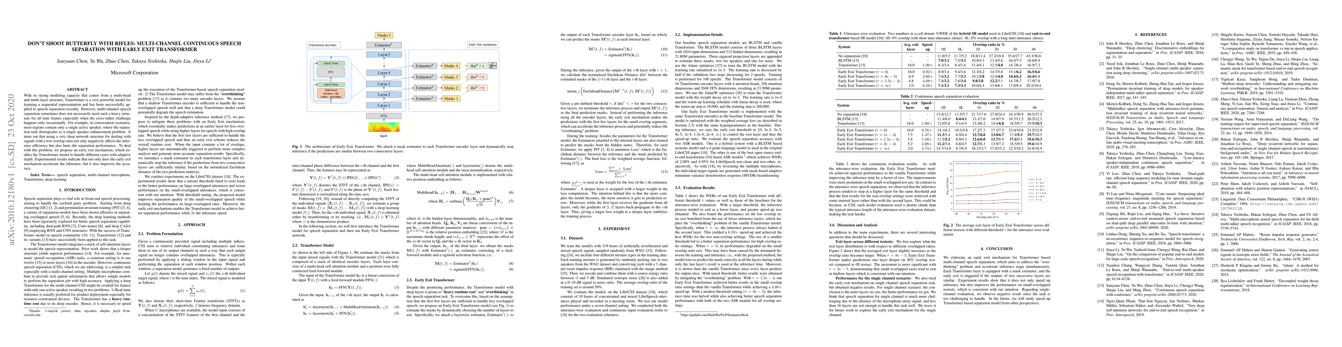 This paper proposes an early exit mechanism for Transformer models to improve multi-channel continuous speech separation. By adapting the model's depth based on the complexity of the input, the method enhances both inference efficiency and separation accuracy.