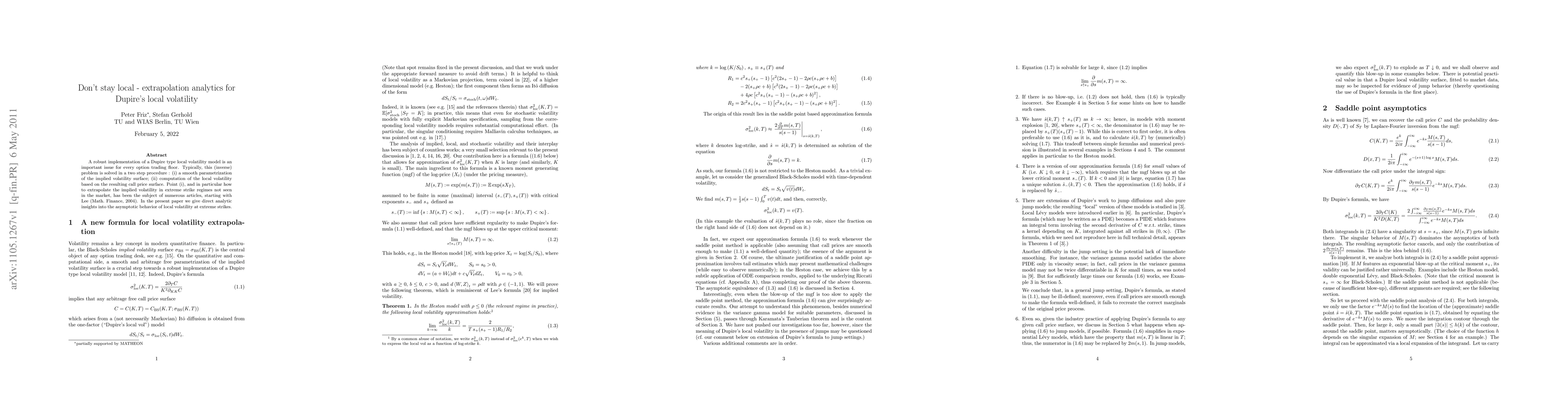 This paper explores the implementation of Dupire's local volatility model, focusing on the extrapolation of implied volatility in extreme strike regimes. It provides analytic insights into the asymptotic behavior of local volatility at extreme strikes, addressing a critical aspect of option trading.