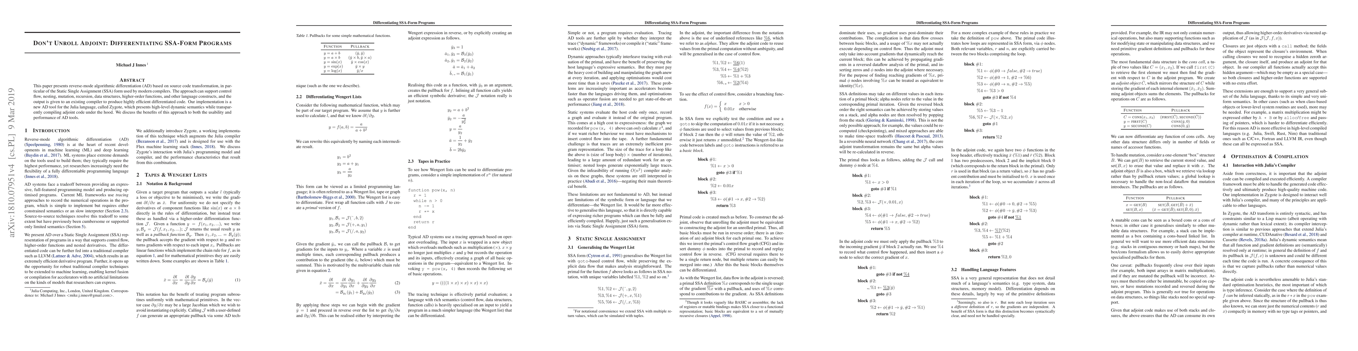 A new reverse-mode algorithmic differentiation tool called Zygote is presented that can differentiate SSA-form programs in Julia language, offering high performance and dynamic semantics.