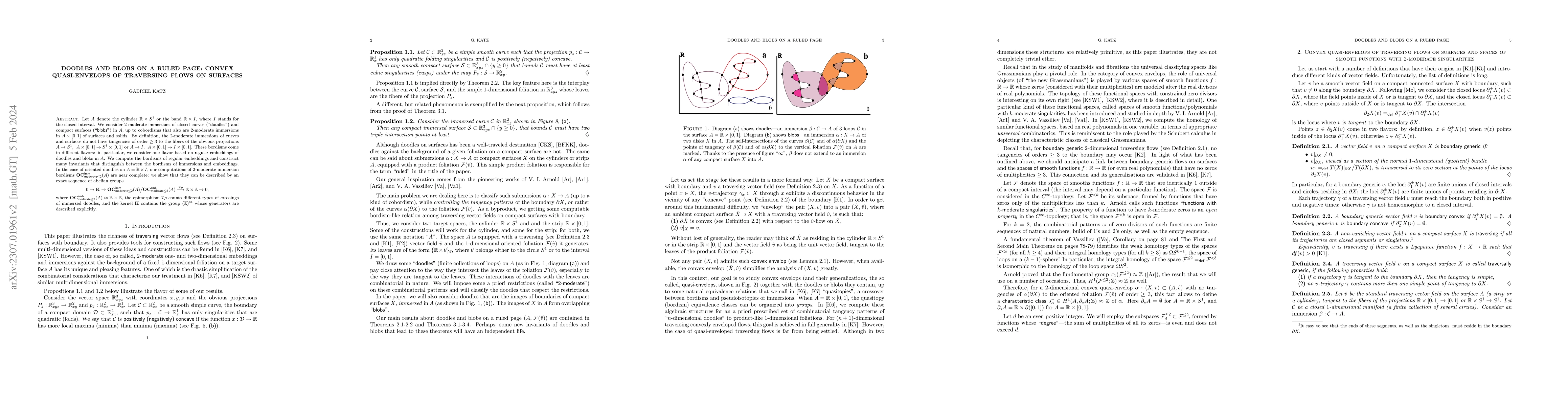Let $A$ denote the cylinder $\mathbb R \times S^1$ or the band $\mathbb R \times I$, where $I$ stands for the closed interval. We consider $2$-{\sf moderate immersions} of closed curves (``{\sf doodles}") and compact surfaces (``{\sf blobs}") in $A$, up to cobordisms that also are $2$-moderate immersions in $A \times [0, 1]$ of surfaces and solids. By definition, the $2$-moderate immersions of curves and surfaces do not have tangencies of order $\geq 3$ to the fibers of the obvious projections $A \to S^1$,\; $A \times [0, 1] \to S^1 \times [0, 1]$ or $A \to I$,\; $A \times [0, 1] \to I \times [0, 1]$. These bordisms come in different flavors: in particular, we consider one flavor based on {\sf regular embeddings} of doodles and blobs in $A$. We compute the bordisms of regular embeddings and construct many invariants that distinguish between the bordisms of immersions and embeddings. In the case of oriented doodles on $A= \mathbb R \times I$, our computations of $2$-moderate immersion bordisms $\mathbf{OC}^{\mathsf{imm}}_{\mathsf{moderate \leq 2}}(A)$ are near complete: we show that they can be described by an exact sequence of abelian groups $$0 \to \mathbf K \to \mathbf{OC}^{\mathsf{imm}}_{\mathsf{moderate \leq 2}}(A)\big/\mathbf{OC}^{\mathsf{emb}}_{\mathsf{moderate \leq 2}}(A) \stackrel{\mathcal I \rho}{\longrightarrow} \mathbb Z \times \mathbb Z \to 0,$$ where $\mathbf{OC}^{\mathsf{emb}}_{\mathsf{moderate \leq 2}}(A) \approx \mathbb Z \times \mathbb Z$, the epimorphism $\mathcal I \rho$ counts different types of crossings of immersed doodles, and the kernel $\mathbf K$ contains the group $(\mathbb Z)^\infty$ whose generators are described explicitly.
