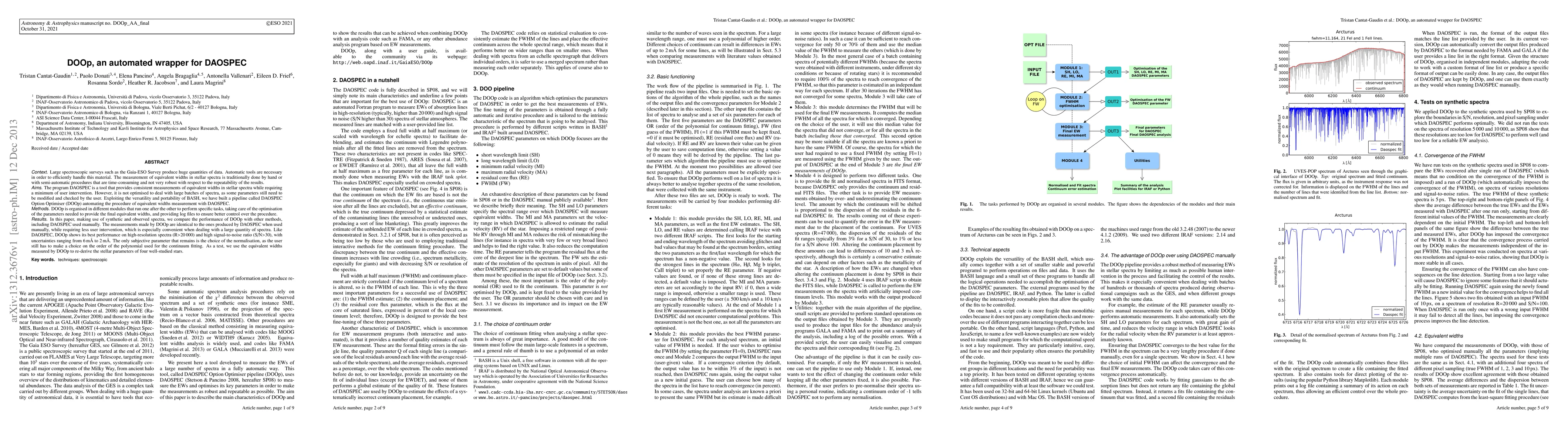 The research introduces DOOp, a BASH pipeline automating equivalent widths measurement with DAOSPEC, a tool for stellar spectra analysis. DOOp optimizes parameters, reduces user intervention, and performs comparably to manual DAOSPEC use. It excels with high-resolution (R>20 000) and high signal-to-noise ratio (S/N>30) spectra, offering uncertainties from 6 to 2 mÅ. The only subjective step remains continuum fitting polynomial selection.