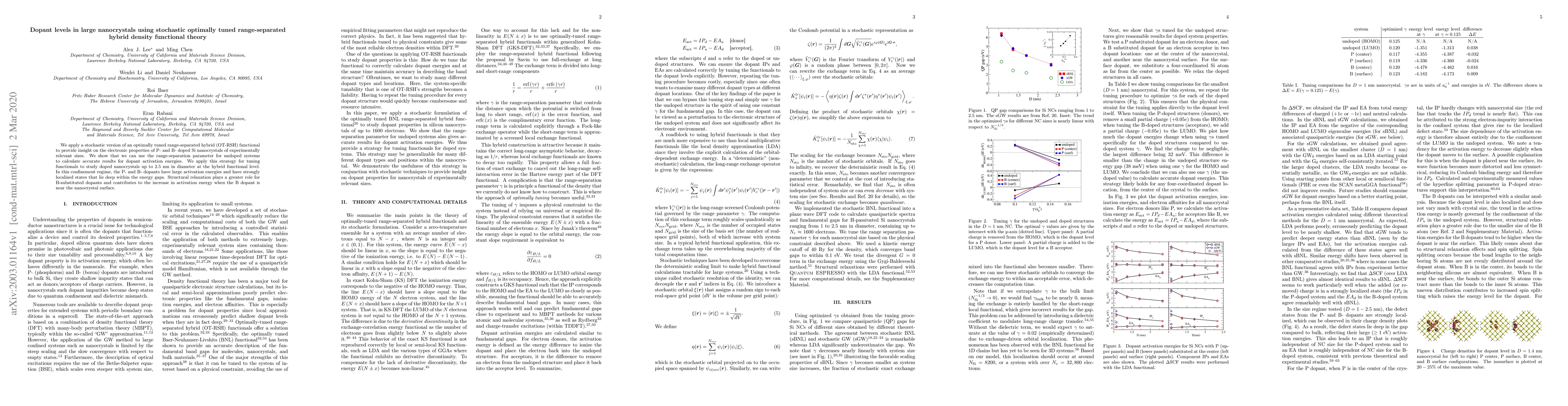 This paper employs a stochastic optimally tuned range-separated hybrid density functional theory to study the electronic properties of P- and B-doped Si nanocrystals. The method accurately calculates dopant activation energies and reveals that dopants have large activation energies and localized states within the energy gaps, with structural relaxation significantly affecting B-substituted dopants.