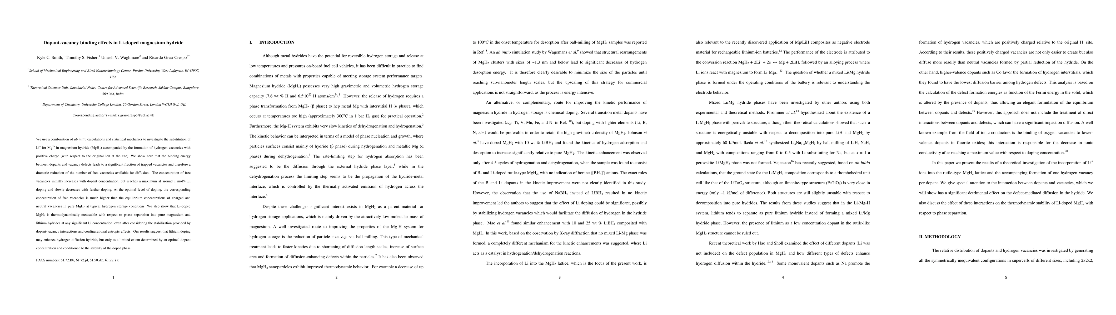 This study uses ab initio calculations and statistical mechanics to explore the effects of Li+ doping in magnesium hydride (MgH2), showing that dopant-vacancy binding traps vacancies and significantly reduces their diffusion. Optimal doping at 1 mol% Li maximizes free vacancy concentration and enhances hydrogen diffusion, but Li-doped MgH2 remains metastable concerning phase separation.