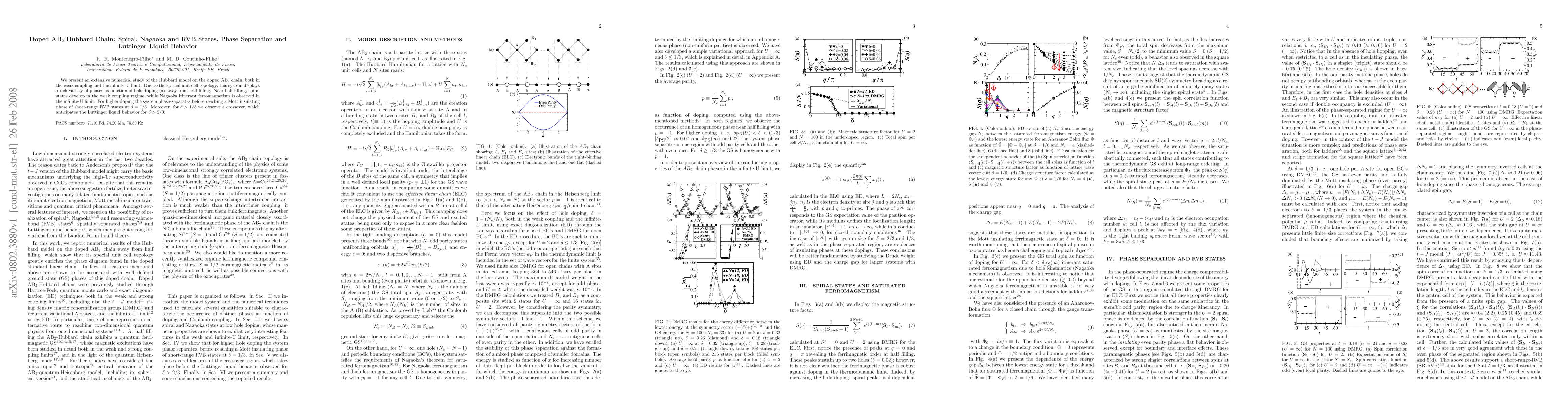 Researchers studied a doped AB2 chain in the Hubbard model, finding that it undergoes phase transitions from spiral to RVB states as hole doping increases, with a crossover region indicating Luttinger liquid behavior.
