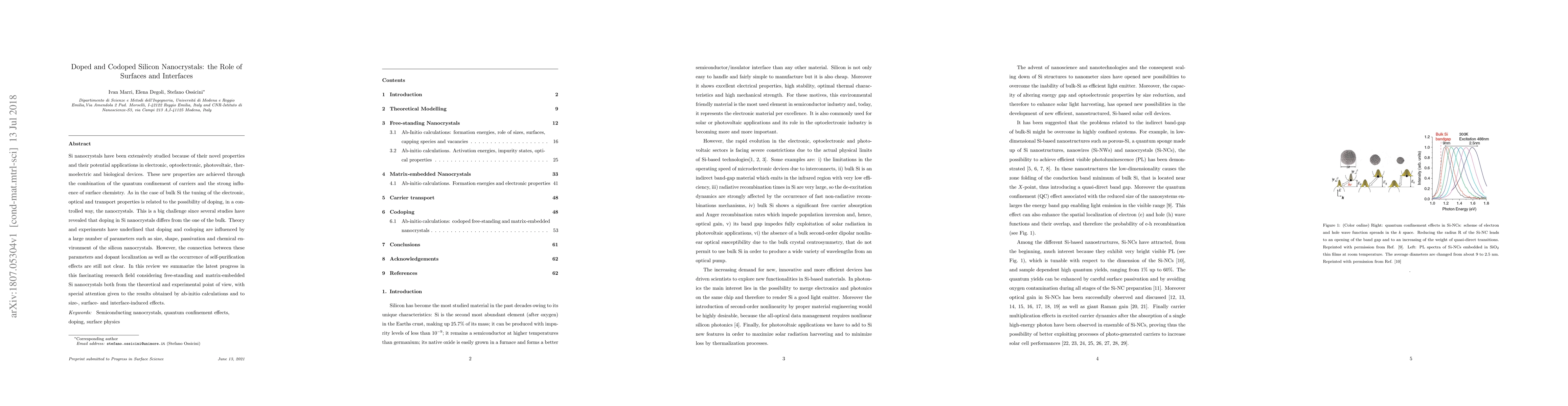 This paper reviews recent advancements in understanding doped and codoped silicon nanocrystals, focusing on the influence of surface chemistry and interfaces on their electronic, optical, and transport properties. It highlights the challenges in controlling doping due to size, shape, and passivation effects, and discusses theoretical and experimental findings, particularly those derived from ab-initio calculations.