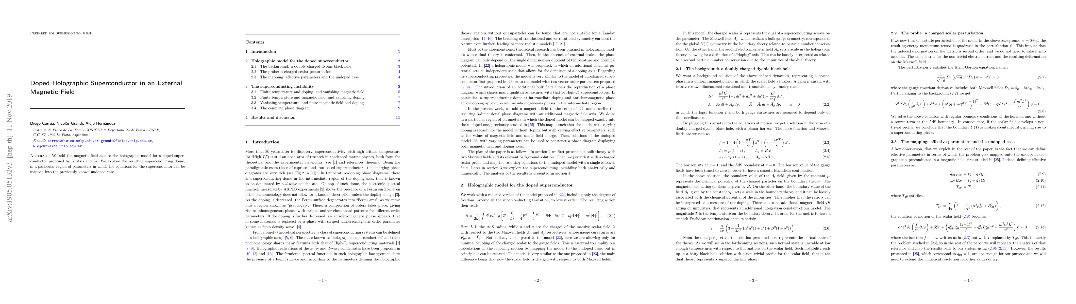 We add the magnetic field axis to the holographic model for a doped superconductor proposed by Kiritsis and Li. We explore the resulting superconducting dome, in a particular region of parameters in which the equations for the superconductor can be mapped into the previously known undoped case.