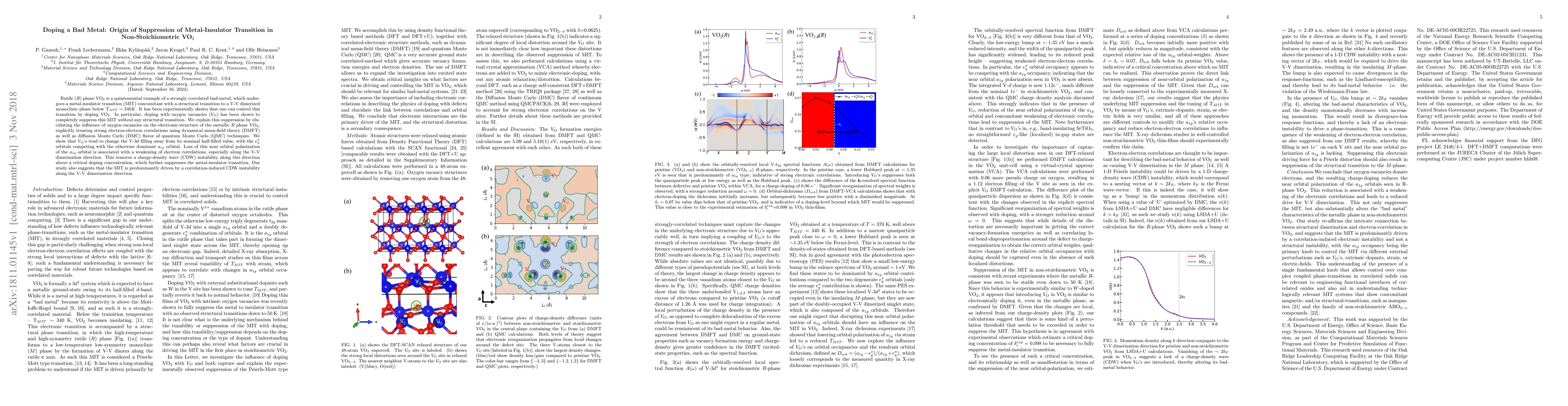 This paper investigates how doping VO$_2$ with oxygen vacancies suppresses its metal-insulator transition (MIT) without altering its structural phase. The study uses DMFT and quantum Monte Carlo techniques to show that oxygen vacancies modify the electronic structure, weakening electron correlations and removing charge-density wave instability, thus preventing the MIT.
