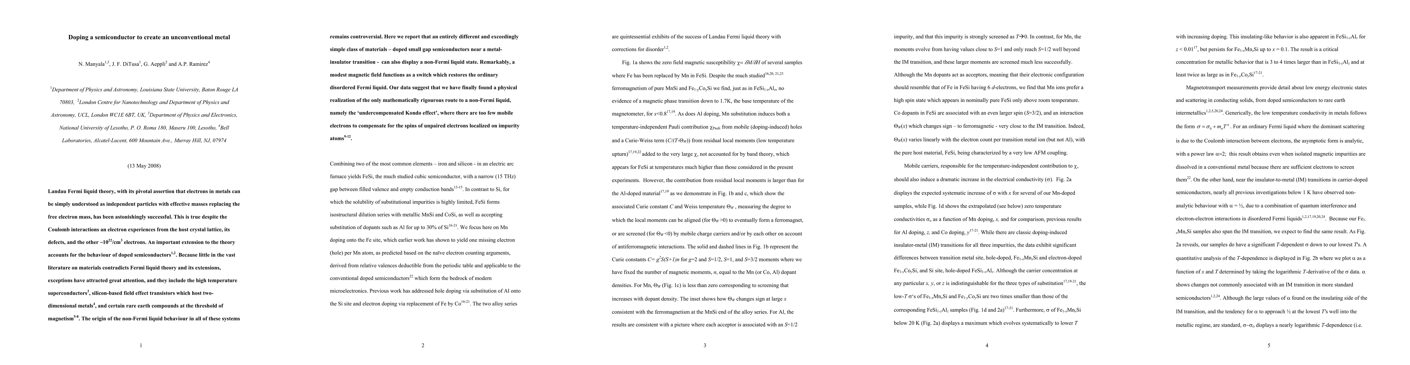 Landau Fermi liquid theory, with its pivotal assertion that electrons in metals can be simply understood as independent particles with effective masses replacing the free electron mass, has been astonishingly successful. This is true despite the Coulomb interactions an electron experiences from the host crystal lattice, its defects, and the other ~1022/cm3 electrons. An important extension to the theory accounts for the behaviour of doped semiconductors1,2. Because little in the vast literature on materials contradicts Fermi liquid theory and its extensions, exceptions have attracted great attention, and they include the high temperature superconductors3, silicon-based field effect transistors which host two-dimensional metals4, and certain rare earth compounds at the threshold of magnetism5-8. The origin of the non-Fermi liquid behaviour in all of these systems remains controversial. Here we report that an entirely different and exceedingly simple class of materials - doped small gap semiconductors near a metal-insulator transition - can also display a non-Fermi liquid state. Remarkably, a modest magnetic field functions as a switch which restores the ordinary disordered Fermi liquid. Our data suggest that we have finally found a physical realization of the only mathematically rigourous route to a non-Fermi liquid, namely the 'undercompensated Kondo effect', where there are too few mobile electrons to compensate for the spins of unpaired electrons localized on impurity atoms9-12.