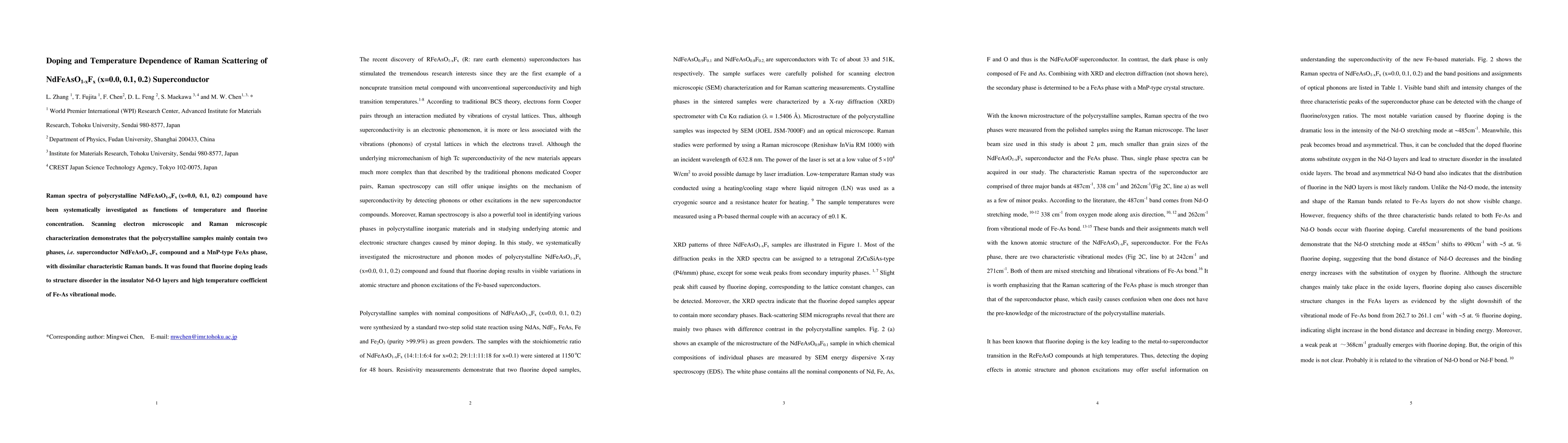 This study investigates the Raman scattering of NdFeAsO1-xFx (x=0.0, 0.1, 0.2) superconductors under varying temperature and fluorine concentration. The results show that fluorine doping induces structural disorder in Nd-O layers and affects the Fe-As vibrational mode, highlighting the material's temperature dependence.