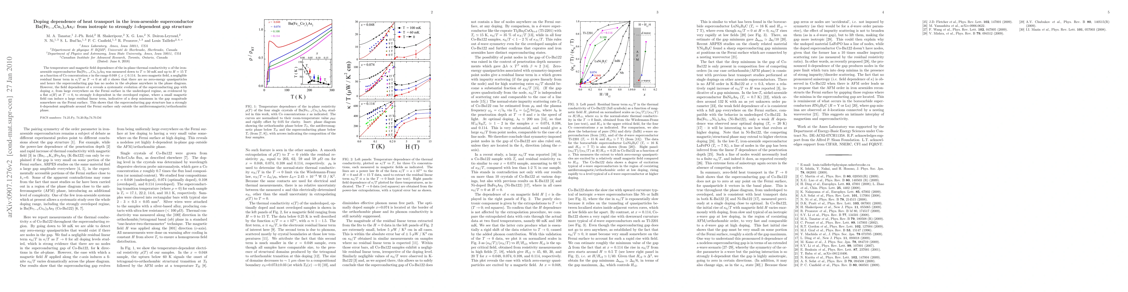 Researchers studied the iron-arsenide superconductor Ba(Fe1-xCox)2As2, finding that its heat transport changes significantly with doping level and magnetic field strength, revealing a strongly k-dependent gap structure that varies by location on the Fermi surface.