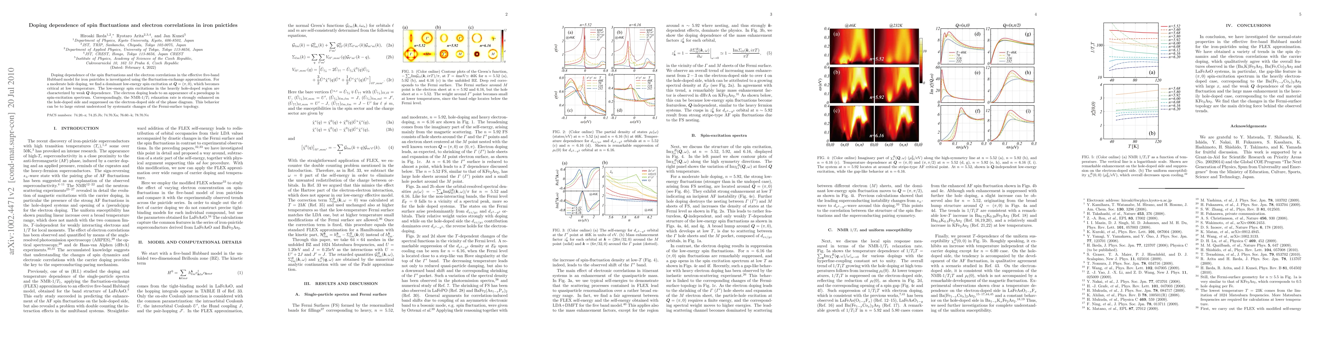 This study investigates how doping affects spin fluctuations and electron correlations in iron pnictides using a five-band Hubbard model. Moderate hole doping leads to critical low-energy spin excitations, while electron doping introduces a pseudogap, with significant changes in the NMR-1/T1 relaxation rate linked to Fermi-surface topology variations.