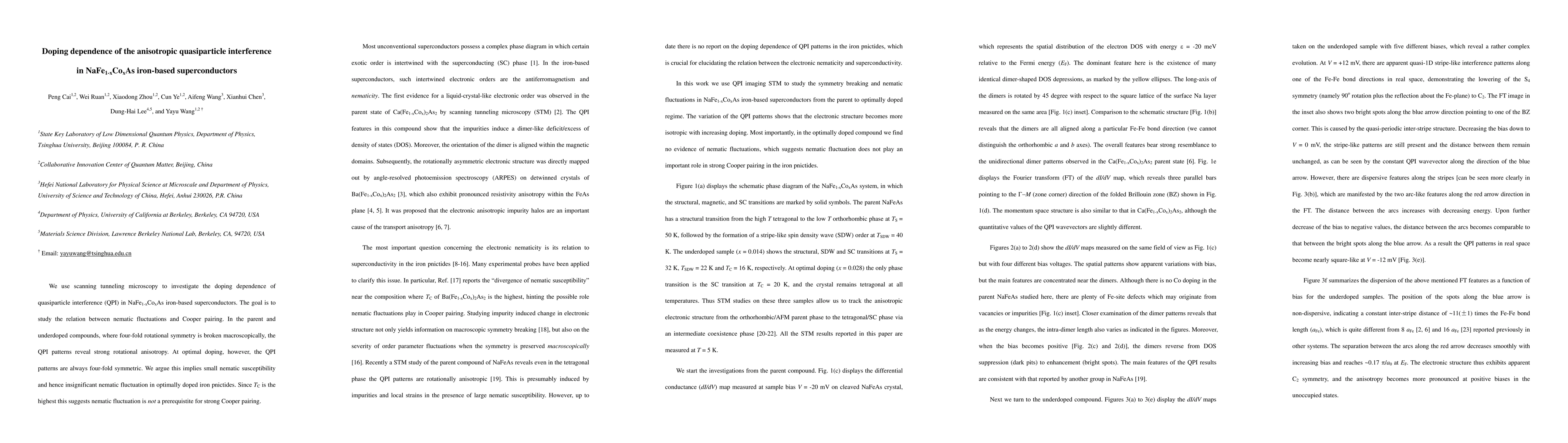 This study uses scanning tunneling microscopy to examine how quasiparticle interference (QPI) patterns in NaFe1-xCoxAs iron-based superconductors change with doping. The findings indicate that nematic fluctuations are minimal in optimally doped compounds, suggesting that such fluctuations are not necessary for strong Cooper pairing, despite the highest critical temperature occurring in this doping regime.