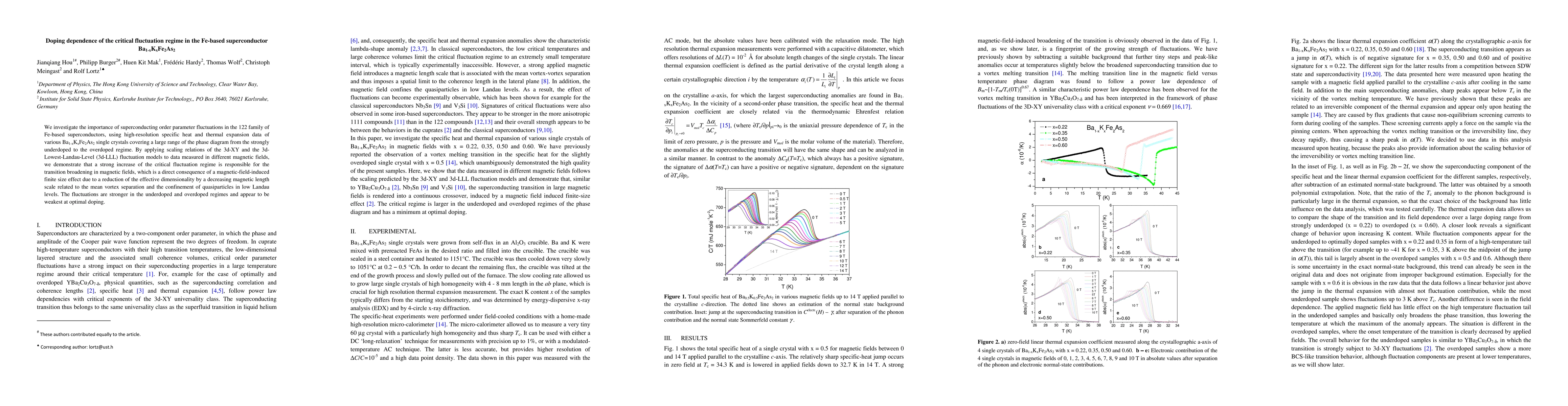We investigate the importance of superconducting order parameter fluctuations in the 122 family of Fe-based superconductors, using high-resolution specific heat and thermal expansion data of various Ba$_{1-x}$K$_x$Fe$_2$As$_2$ single crystals covering a large range of the phase diagram from the strongly underdoped to the overdoped regime. By applying scaling relations of the 3d-XY and the 3d-Lowest-Landau-Level (3d-LLL) fluctuation models to data measured in different magnetic fields, we demonstrate that a strong increase of the critical fluctuation regime is responsible for the transition broadening in magnetic fields, which is a direct consequence of a magnetic-field-induced finite size effect due to a reduction of the effective dimensionality by a decreasing magnetic length scale related to the mean vortex separation and the confinement of quasiparticles in low Landau levels. The fluctuations are stronger in the underdoped and overdoped regimes and appear to be weakest at optimal doping.