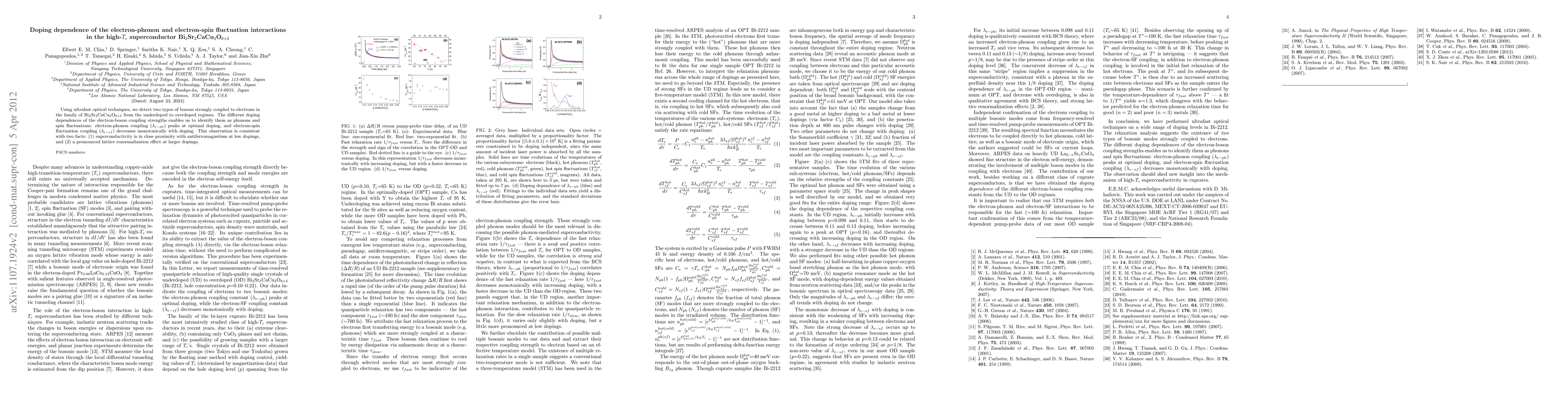 Using ultrafast optical techniques, we detect two types of bosons strongly coupled to electrons in the family of Bi$_{2}$Sr$_{2}$CaCu$_{2}$O$_{8+\delta}$ from the underdoped to overdoped regimes. The different doping dependences of the electron-boson coupling strengths enables us to identify them as phonons and spin fluctuations: electron-phonon coupling ($\lambda_{e-ph}$) peaks at optimal doping, and electron-spin fluctuation coupling ($\lambda_{e-sf}$) decreases monotonically with doping. This observation is consistent with two facts: (1) superconductivity is in close proximity with antiferromagnetism at low dopings, and (2) a pronounced lattice renormalization effect at larger dopings.