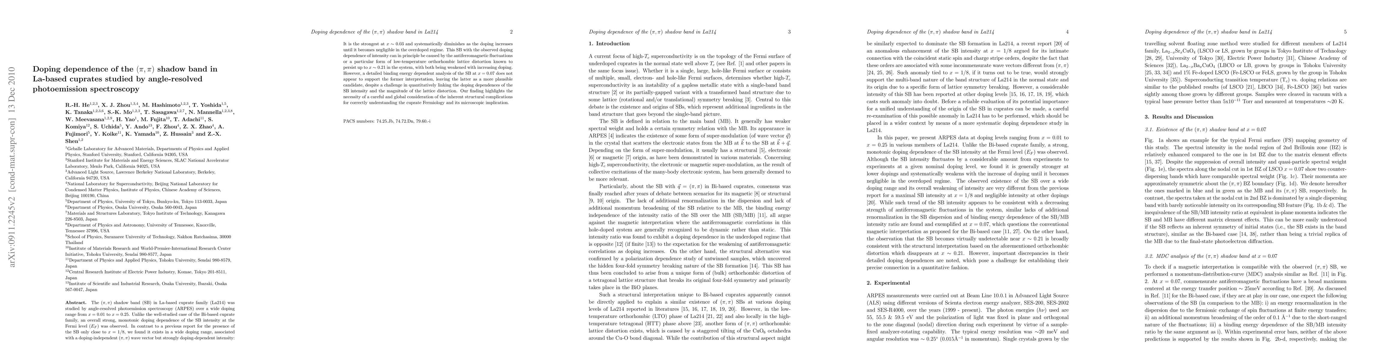Researchers studied the $( u, u)$ shadow band in La-based cuprates using ARPES and found a strong, doping-dependent intensity that diminishes with increasing doping, contrasting with previous reports for Bi-based cuprates.