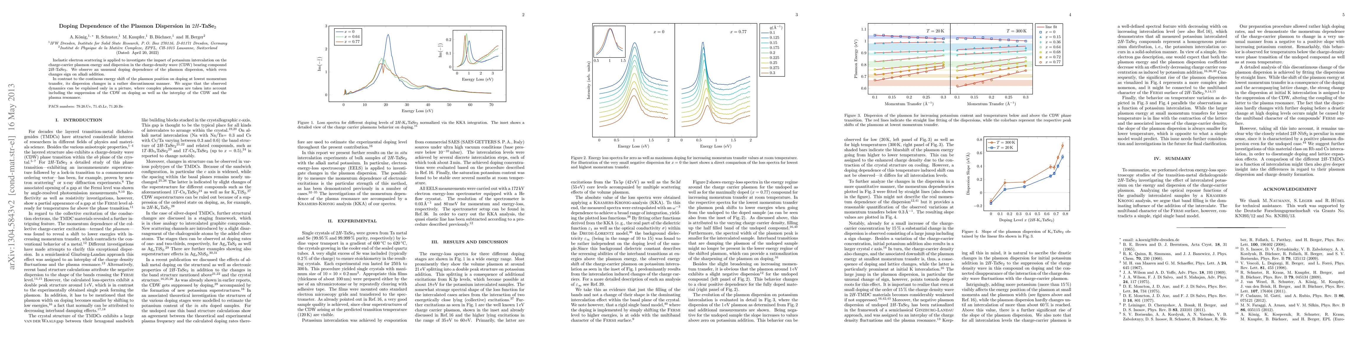 This study uses inelastic electron scattering to examine how potassium doping affects plasmon energy and dispersion in 2H-tantalum-diselenide, revealing a unique doping-dependent plasmon dispersion that changes sign with alkali addition. The observed discontinuous changes in dispersion suggest complex interactions, including the suppression of charge-density waves and the interplay between CDW and plasma resonance.
