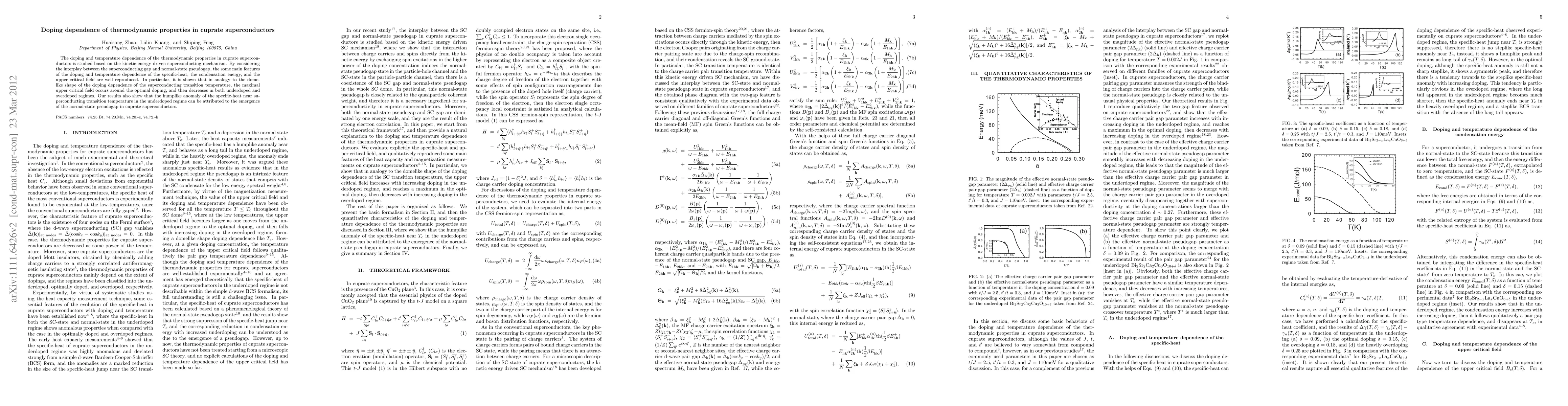 This study investigates the thermodynamic properties of cuprate superconductors under various doping levels and temperatures, revealing that optimal doping maximizes the upper critical field, while underdoped conditions show a humplike anomaly in specific heat due to the pseudogap. The findings align with a kinetic energy-driven superconducting mechanism.