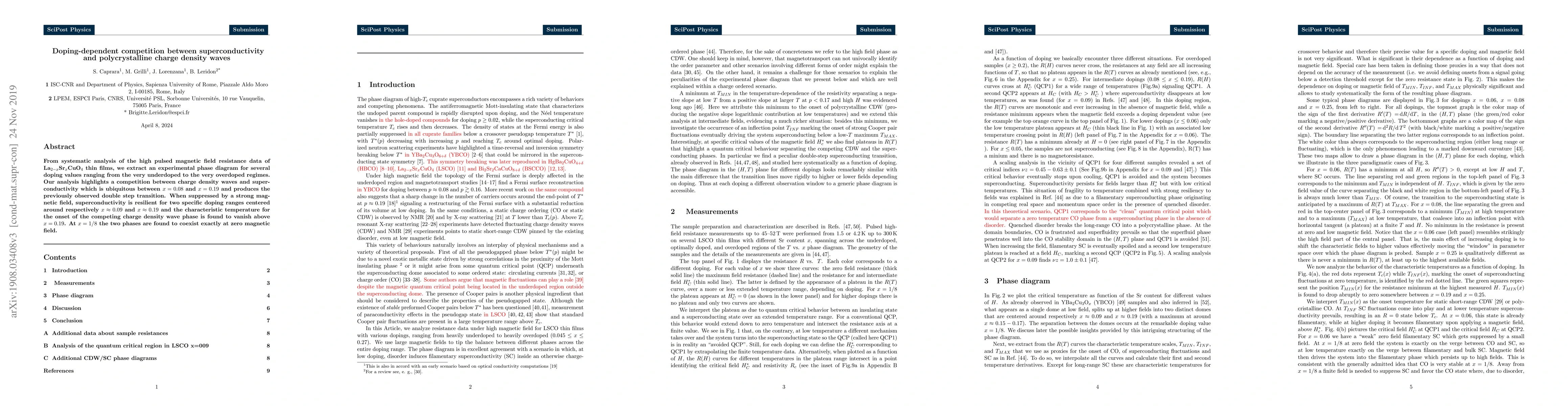 From systematic analysis of the high pulsed magnetic field resistance data of La$_{2-x}$Sr$_x$CuO$_{4}$ thin films, we extract an experimental phase diagram for several doping values ranging from the very underdoped to the very overdoped regimes. Our analysis highlights a competition between charge density waves and superconductivity which is ubiquitous between $x=0.08$ and $x=0.19$ and produces the previously observed double step transition. When suppressed by a strong magnetic field, superconductivity is resilient for two specific doping ranges centered around respectively $x\approx 0.09$ and $x\approx 0.19$ and the characteristic temperature for the onset of the competing charge density wave phase is found to vanish above $x = 0.19$. At $x=1/8$ the two phases are found to coexist exactly at zero magnetic field.