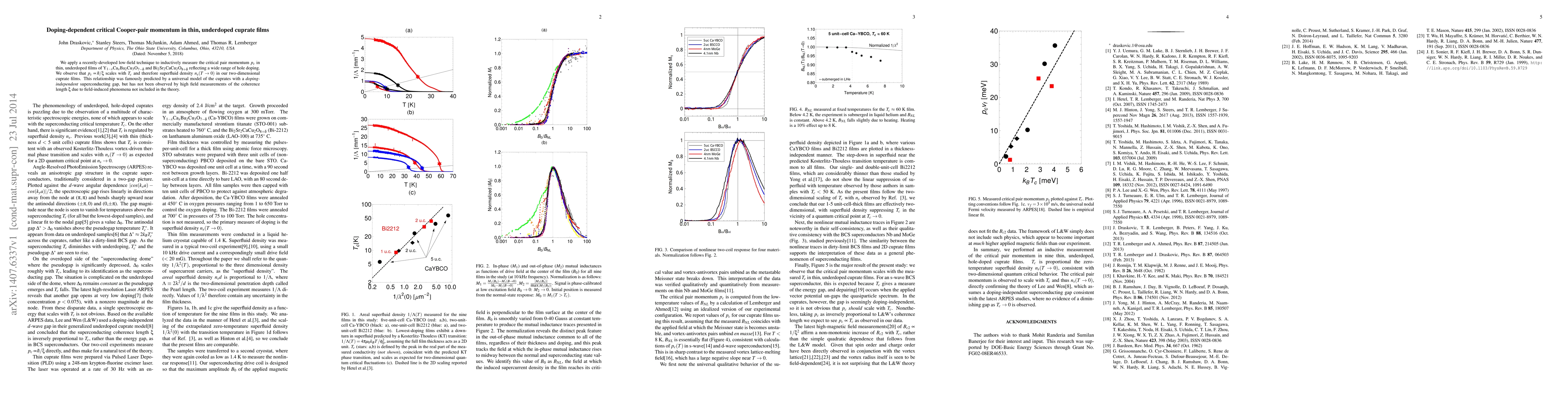 We apply a recently-developed low-field technique to inductively measure the critical pair momentum $p_c$ in thin, underdoped films of Y$_{1-x}$Ca$_{x}$Ba$_{2}$Cu$_{3}$O$_{7-\delta}$ and Bi$_{2}$Sr$_{2}$CaCu$_{2}$O$_{8+\delta}$ reflecting a wide range of hole doping. We observe that $p_c \propto \hbar/\xi$ scales with $T_c$ and therefore superfluid density $n_s(T\rightarrow0)$ in our two-dimensional cuprate films. This relationship was famously predicted by a universal model of the cuprates with a \textit{doping-independent} superconducting gap, but has not been observed by high field measurements of the coherence length $\xi$ due to field-induced phenomena not included in the theory.