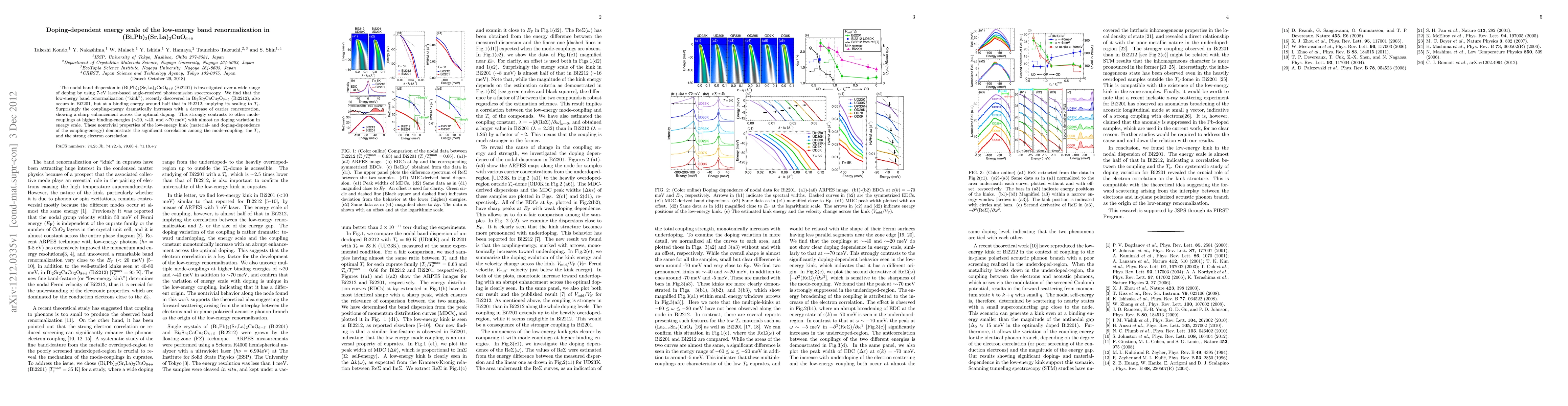 The nodal band-dispersion in (Bi,Pb)2(Sr,La)2CuO6+d (Bi2201) is investigated over a wide range of doping by using 7-eV laser-based angle-resolved photoemission spectroscopy. We find that the low-energy band renormalization ("kink"), recently discovered in Bi2Sr2CaCu2O8+d (Bi2212), also occurs in Bi2201, but at a binding energy around half that in Bi2212, implying its scaling to Tc. Surprisingly the coupling-energy dramatically increases with a decrease of carrier concentration, showing a sharp enhancement across the optimal doping. This strongly contrasts to other mode-couplings at higher binding-energies (~20, ~40, and ~70 meV) with almost no doping variation in energy scale. These nontrivial properties of the low-energy kink (material- and doping-dependence of the coupling-energy) demonstrate the significant correlation among the mode-coupling, the Tc, and the strong electron correlation.
