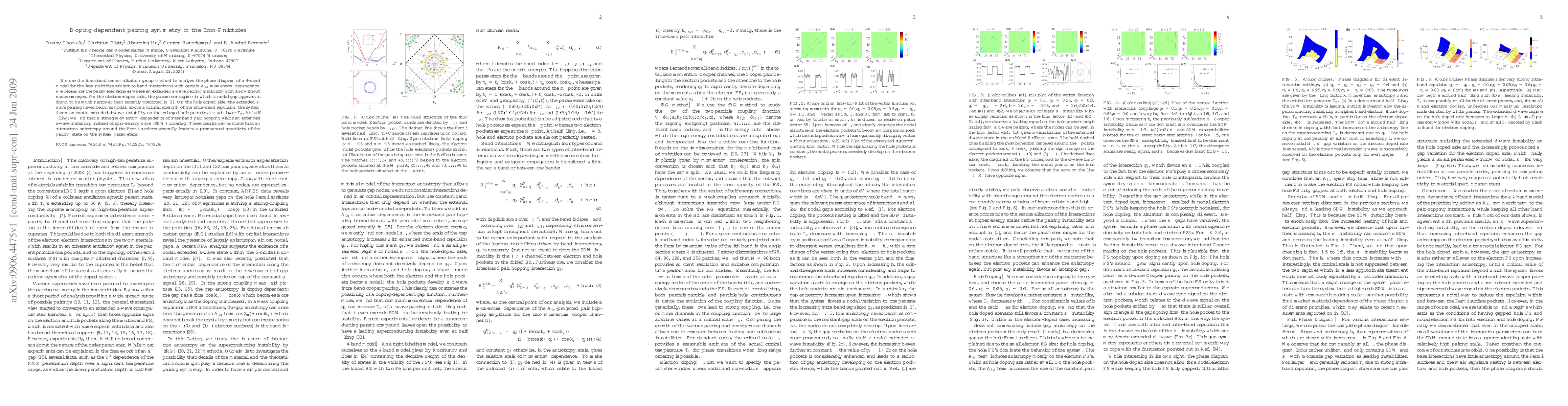 We use the functional renormalization group method to analyze the phase diagram of a 4-band model for the iron-pnictides subject to band interactions with certain A_{1g} momentum dependence. We determine the parameter regimes where an extended s-wave pairing instability with and without nodes emerges. On the electron-doped side, the parameter regime in which a nodal gap appears is found to be much narrower than recently predicted in arXiv:0903.5547. On the hole-doped side, the extended s-wave pairing never becomes nodal: above a critical strength of the intra-band repulsion, the system favors an exotic extended d-wave instability on the enlarged hole pockets at much lower T_c. At half filling, we find that a strong momentum dependence of inter-band pair hopping yields an extended s-wave instability instead of spin-density wave (SDW) ordering. These results demonstrate that an interaction anisotropy around the Fermi surfaces generally leads to a pronounced sensitivity of the pairing state on the system parameters.