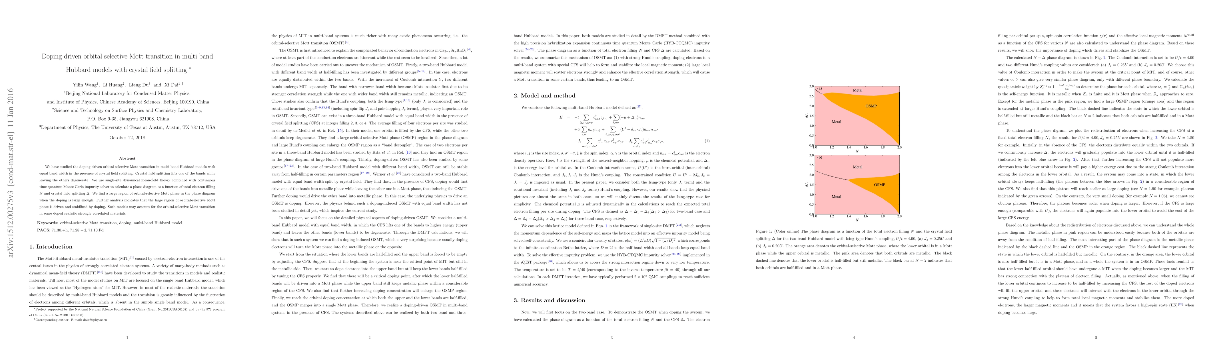 This research investigates the doping-induced orbital-selective Mott transition in multi-band Hubbard models with crystal field splitting, revealing a significant orbital-selective Mott phase region under high doping using advanced computational methods. The findings suggest that doping stabilizes this phase, potentially explaining similar transitions in certain strongly correlated materials.