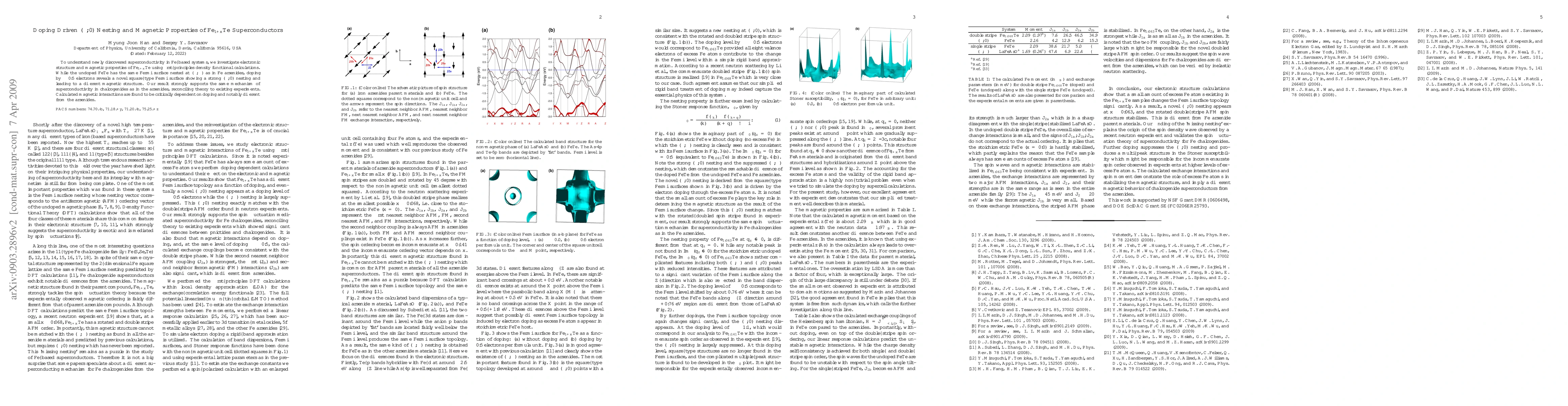 To understand newly discovered superconductivity in Fe--based systems, we investigate electronic structure and magnetic properties of Fe$_{1+x}$Te using first--principles density functional calculations. While the undoped FeTe has the same Fermi surface nested at ($\pi ,\pi $) as in Fe arsenides, doping by $\sim 0.5$ electrons reveals a novel square--type Fermi surface showing a strong ($\pi, 0$) nesting and leading to a different magnetic structure. Our result strongly supports the same mechanism of superconductivity in chalcogenides as in the arsenides, reconciling theory to existing experiments. Calculated magnetic interactions are found to be critically dependent on doping and notably different from the arsenides.