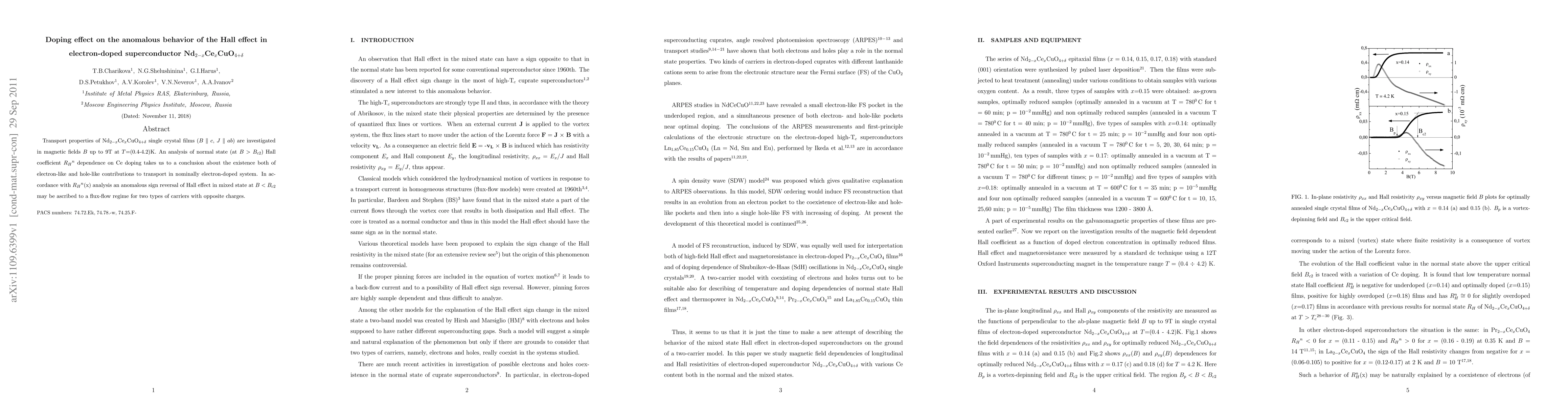 hole-like contributions to transport in nominally electron-doped system. In
