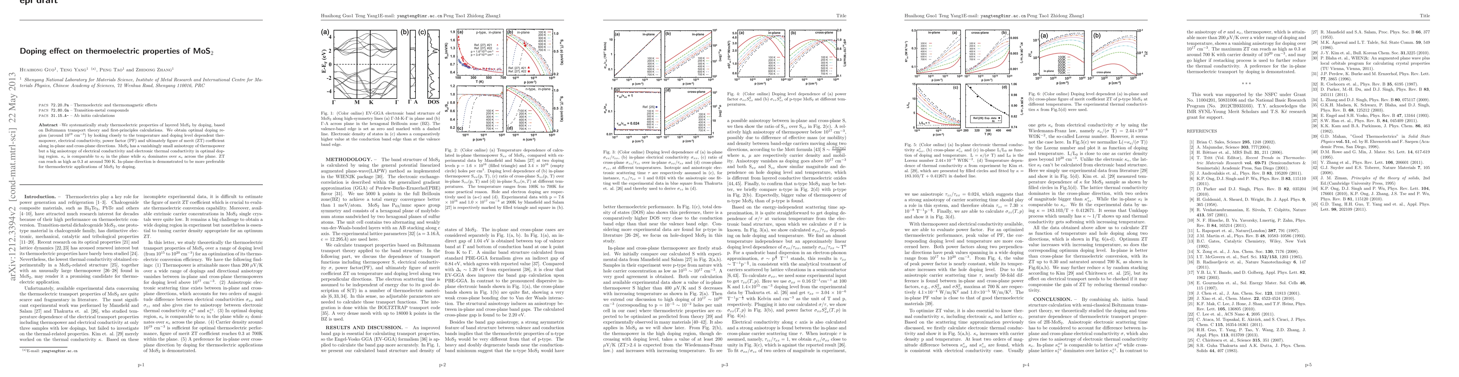 This study explores the thermoelectric properties of doped MoS$_2$ using first-principles calculations and Boltzmann transport theory, finding optimal doping at around 10$^{19}$ cm$^{-3}$. In-plane thermoelectric performance is superior due to significant anisotropy in electrical conductivity and electronic thermal conductivity, achieving a ZT value of up to 0.3 at 700 K.