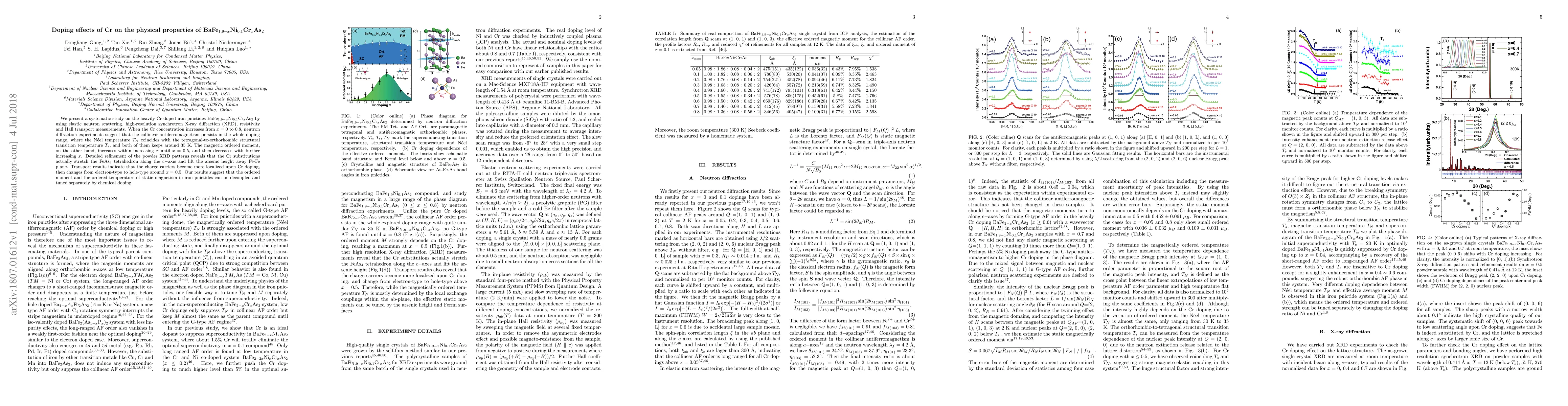 This study investigates the effects of chromium doping on the physical properties of iron pnictides, finding that the magnetic ordered moment and Néel temperature can be decoupled and tuned separately by chemical doping, leading to changes in charge carrier type and localization.