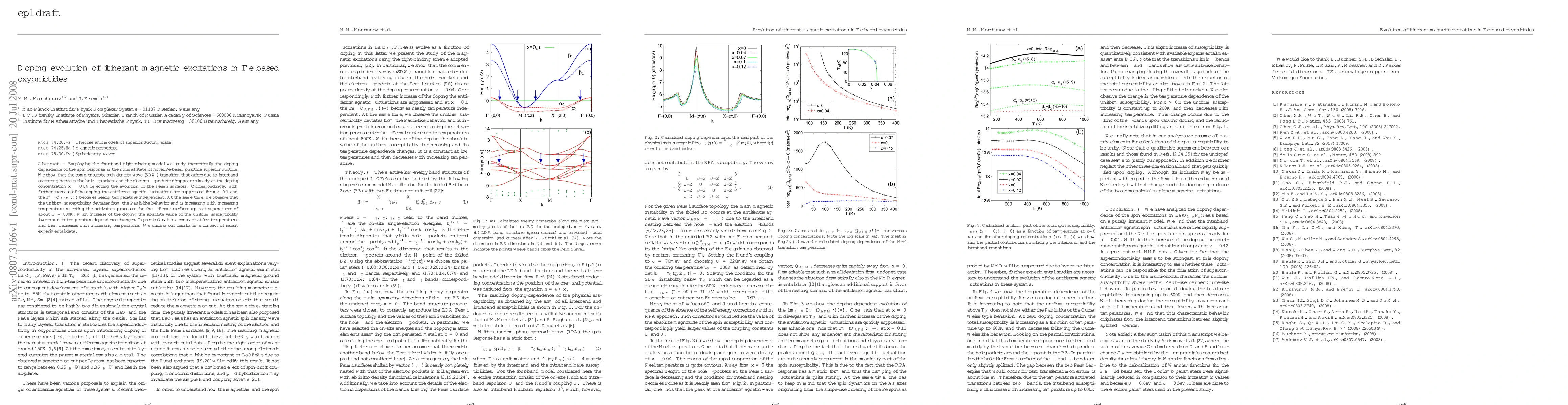 Employing the four-band tight-binding model we study theoretically the doping dependence of the spin response in the normal state of novel Fe-based pnictide superconductors. We show that the commensurate spin density wave (SDW) transition that arises due to interband scattering between the hole $\alpha$-pockets and the electron $\beta$-pockets disappears already at the doping concentration $x \approx 0.04$ reflecting the evolution of the Fermi surfaces. Correspondingly, with further increase of the doping the antiferromagnetic fluctuations are suppressed for $x > 0.1$ and the Im$\chi({\bf Q_{AFM}},\omega)$ becomes nearly temperature independent. At the same time, we observe that the uniform susceptibility deviates from the Pauli-like behavior and is increasing with increasing temperature reflecting the activation processes for the $\alpha$-Fermi surfaces up to temperatures of about T=800K. With increase of the doping the absolute value of the uniform susceptibility lowers and its temperature dependence changes. In particular, it is a constant at low temperatures and then decreases with increasing temperature. We discuss our results in a context of recent experimental data.