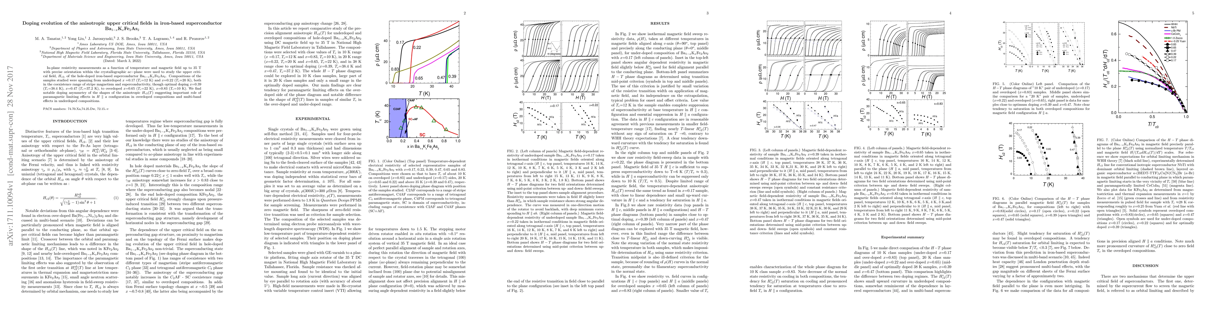 In-plane resistivity measurements as a function of temperature and magnetic field up to 35~T with precise orientation within the crystallographic $ac-$plane were used to study the upper critical field, $H_{c2}$, of the hole-doped iron-based superconductor Ba$_{1-x}$K$_x$Fe$_2$As$_2$. Compositions of the samples studied were spanning from underdoped $x=$0.17 ($T_c$=12~K) and $x$=0.22 ($T_c$=20~K), both in the coexistence range of stripe magnetism and superconductivity, though optimal doping $x$=0.39 ($T_c$=38.4~K), $x$=0.47 ($T_c$=37.2~K), to overdoped $x$=0.65 ($T_c$=22~K), $x$=0.83 ($T_c$=10~K). We find notable doping asymmetry of the shapes of the anisotropic $H_{c2}(T)$ suggesting important role of paramagnetic limiting effects in $H \parallel a$ configuration in overdoped compositions and multi-band effects in underdoped compositions.