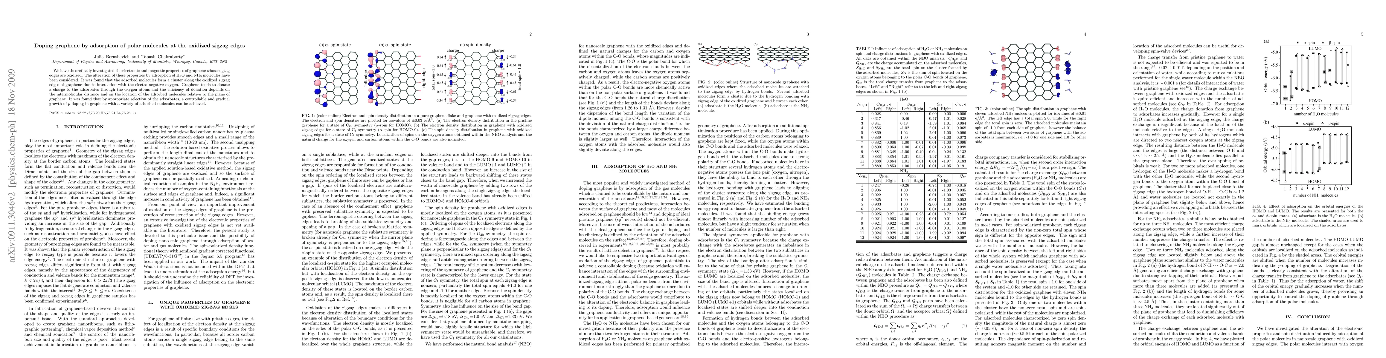 Researchers found that adsorbing polar molecules like H2O and NH3 onto graphene's oxidized zigzag edges can controllably dope the material, allowing for a gradual growth of p-doping. This method offers a potential way to modify graphene's properties.