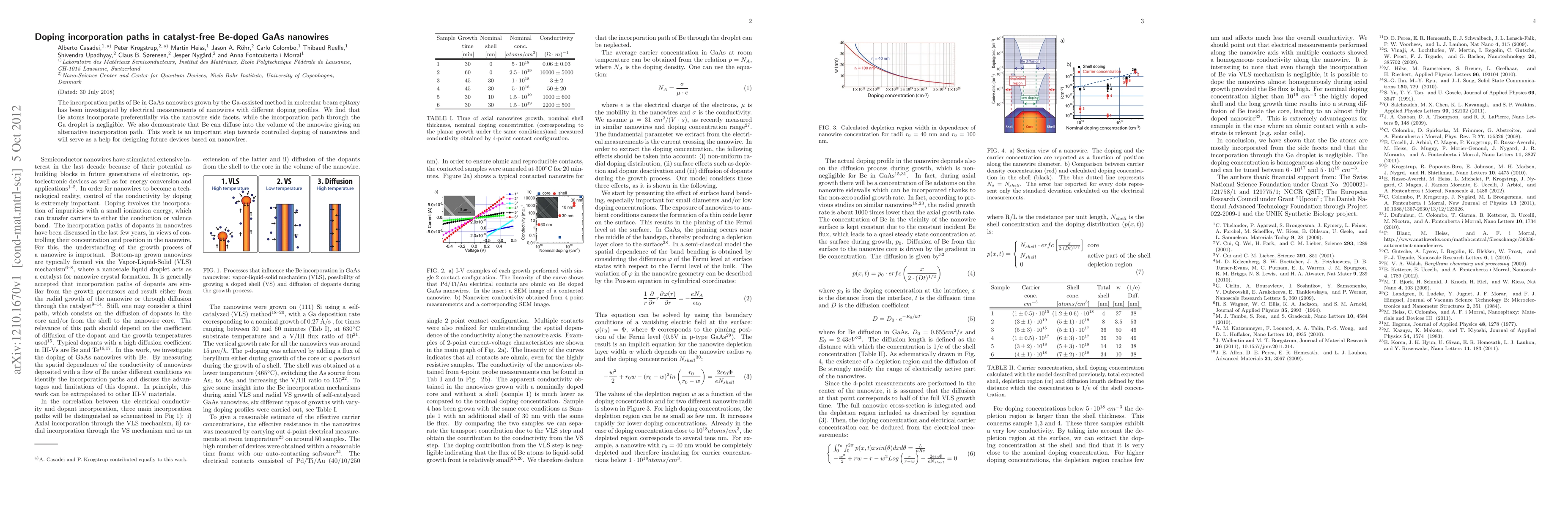 This study investigates the doping paths of Be in GaAs nanowires grown via Ga-assisted molecular beam epitaxy, finding that Be preferentially incorporates through the side facets rather than the Ga droplet, with potential volume diffusion. This insight is crucial for controlled doping and future nanowire device design.