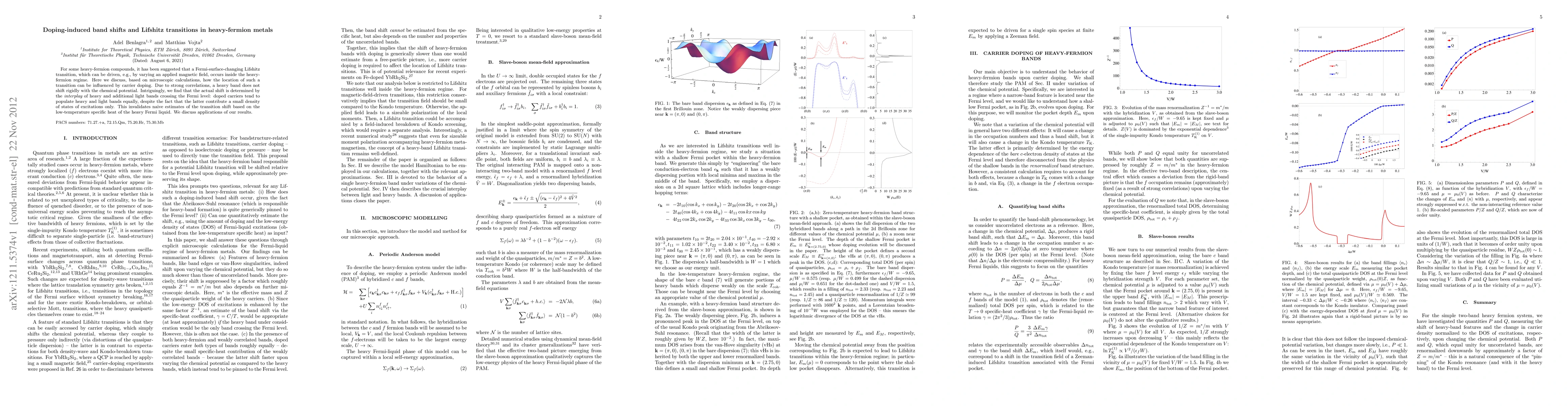 For some heavy-fermion compounds, it has been suggested that a Fermi-surface-changing Lifshitz transition, which can be driven, e.g., by varying an applied magnetic field, occurs inside the heavy- fermion regime. Here we discuss, based on microscopic calculations, how the location of such a transition can be influenced by carrier doping. Due to strong correlations, a heavy band does not shift rigidly with the chemical potential. Intriguingly, we find that the actual shift is determined by the interplay of heavy and additional light bands crossing the Fermi level: doped carriers tend to populate heavy and light bands equally, despite the fact that the latter contribute a small density of states of excitations only. This invalidates naive estimates of the transition shift based on the low-temperature specific heat of the heavy Fermi liquid. We discuss applications of our results.