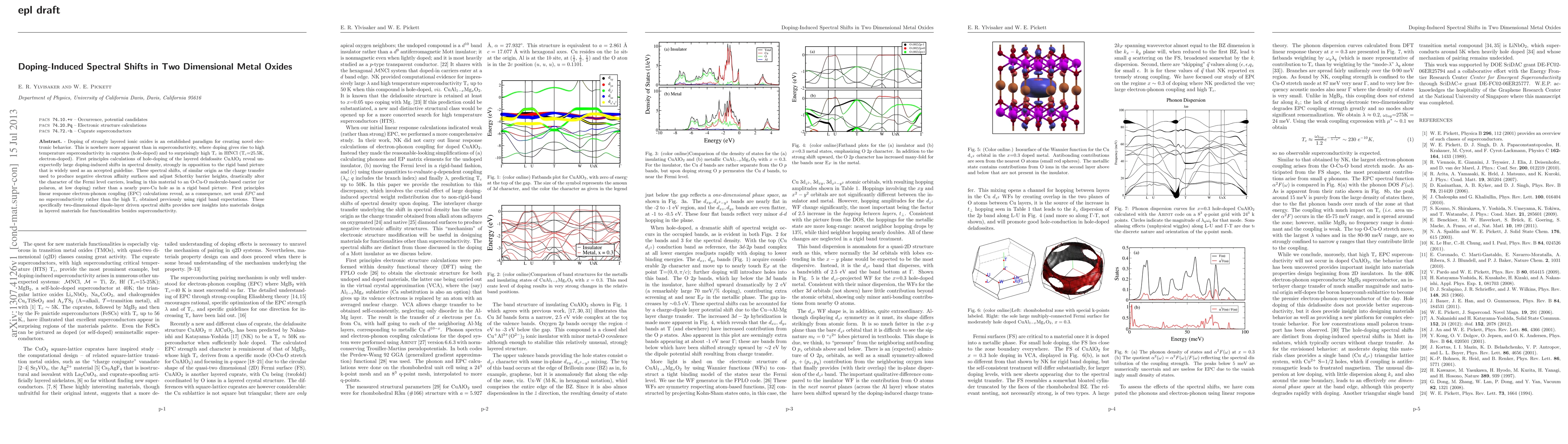 This paper investigates doping-induced spectral shifts in two-dimensional metal oxides, specifically CuAlO2, revealing significant deviations from the rigid band model. These shifts lead to an O-Cu-O molecule-based carrier rather than a pure-Cu hole, resulting in weak electron-phonon coupling and no superconductivity, contrary to previous predictions.