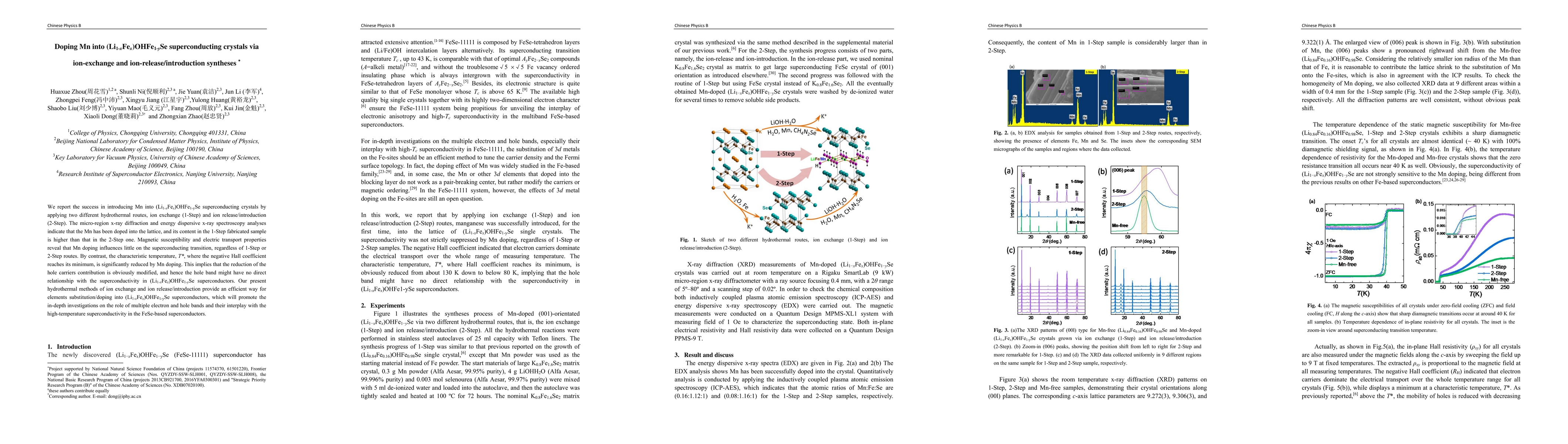 This paper introduces Mn doping into (Li1-xFex)OHFe1-ySe superconducting crystals using hydrothermal ion exchange and ion release/introduction methods. The doping alters the characteristic temperature T* and modifies hole carrier contributions, suggesting a complex relationship between hole bands and superconductivity in these FeSe-based superconductors.