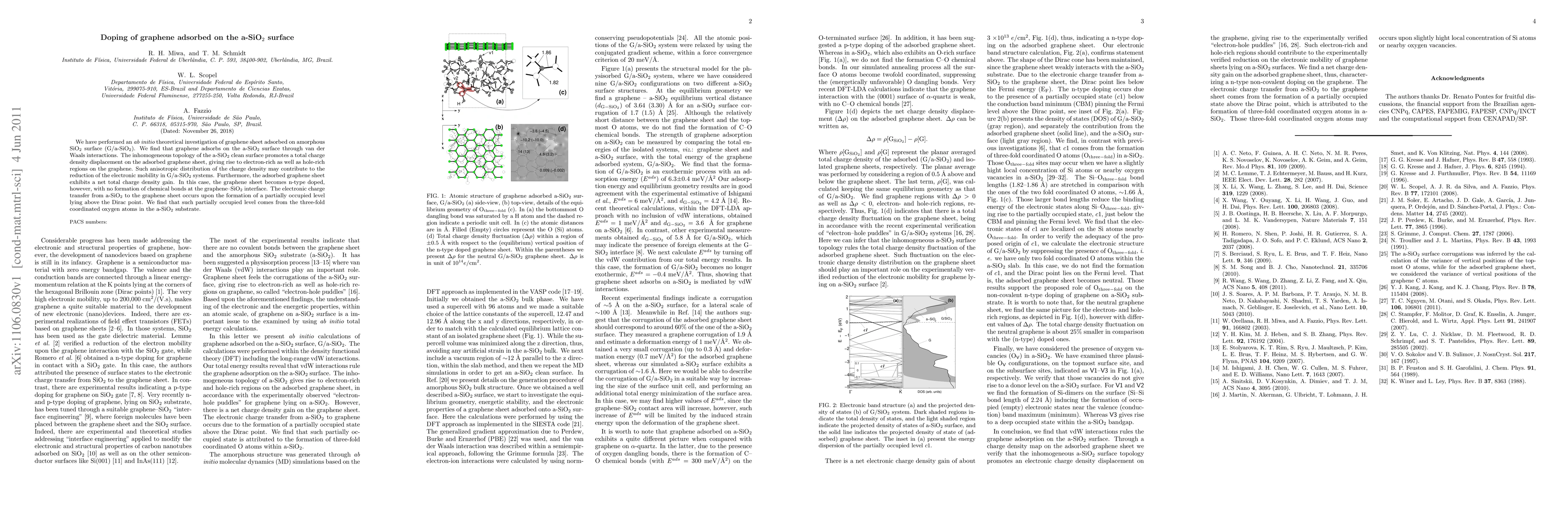 Graphene adsorbed on amorphous SiO2 surface shows anisotropic charge distribution and gains a net total charge density, becoming n-type doped without forming chemical bonds.